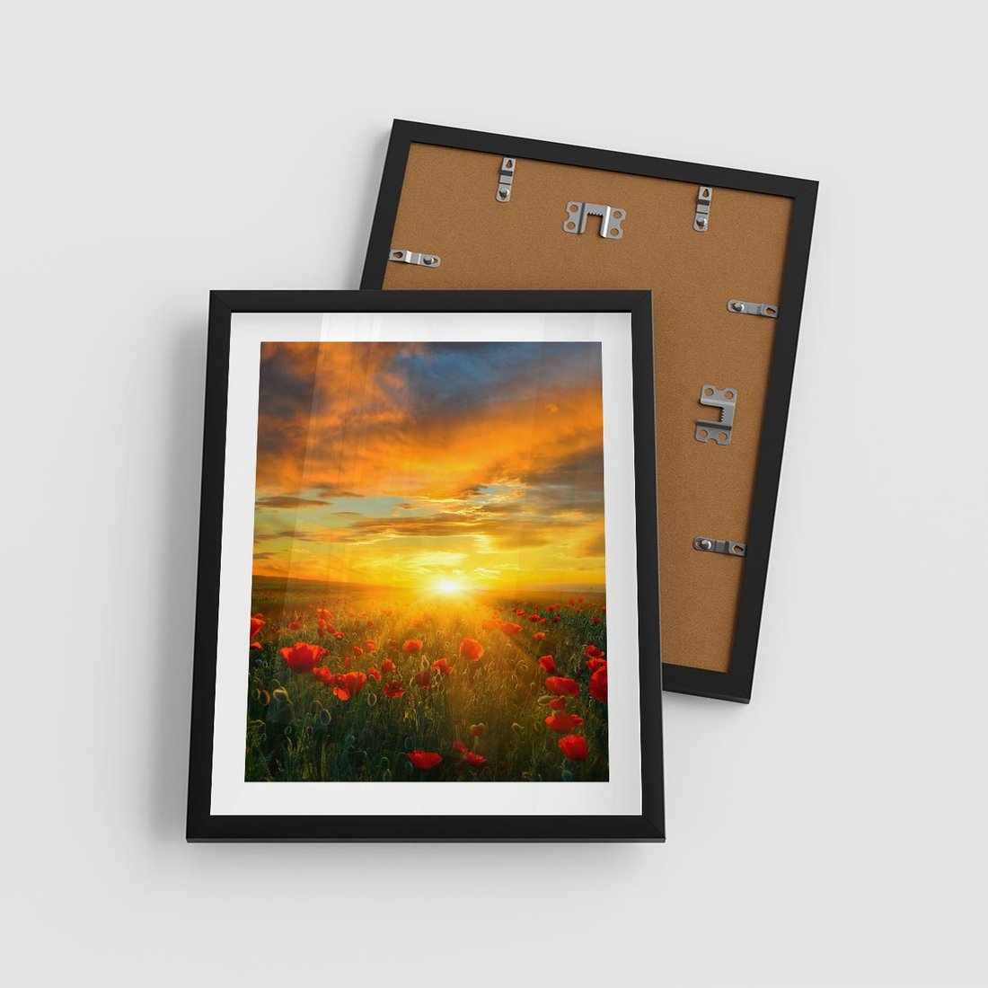- Plakat w ramie 40x50 - Magia zachodu słońca na łące z makami