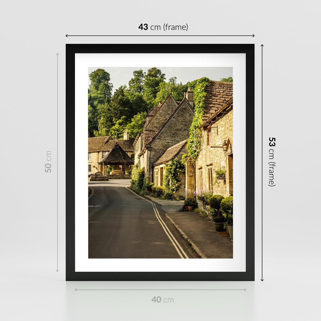 Plakat w ramie 40x50 - Magiczna podróż w głąb miasta - uliczka, perspektywa - rama czarna