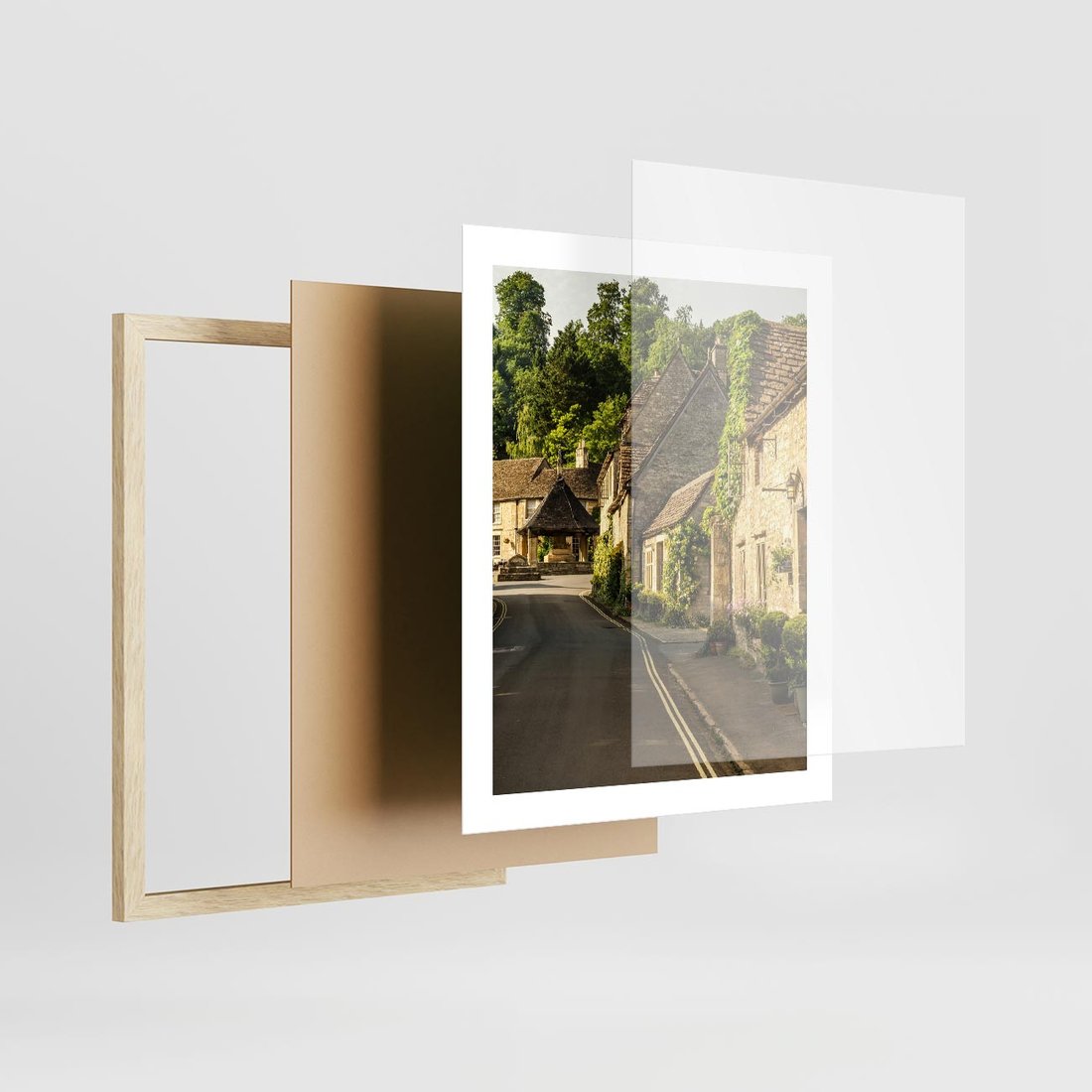 Plakat w ramie 40x50 - Magiczna podróż w głąb miasta - uliczka, perspektywa - rama drewno