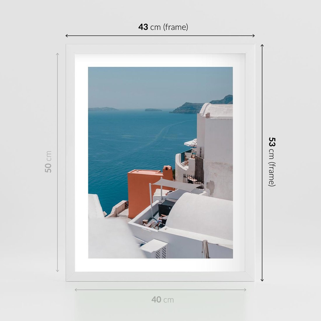 Plakat w ramie 40x50 - Magiczna Wyspa na Twojej Ścianie - Santorini, wyspa - rama biała
