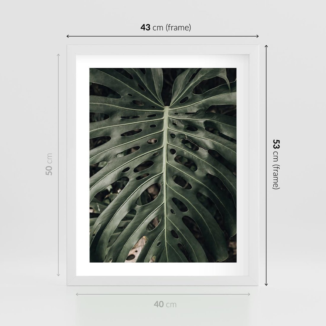 Plakat w ramie 40x50 - Majestatyczny Liść Monstery - liść monstery, majestatyczny liść - rama biała