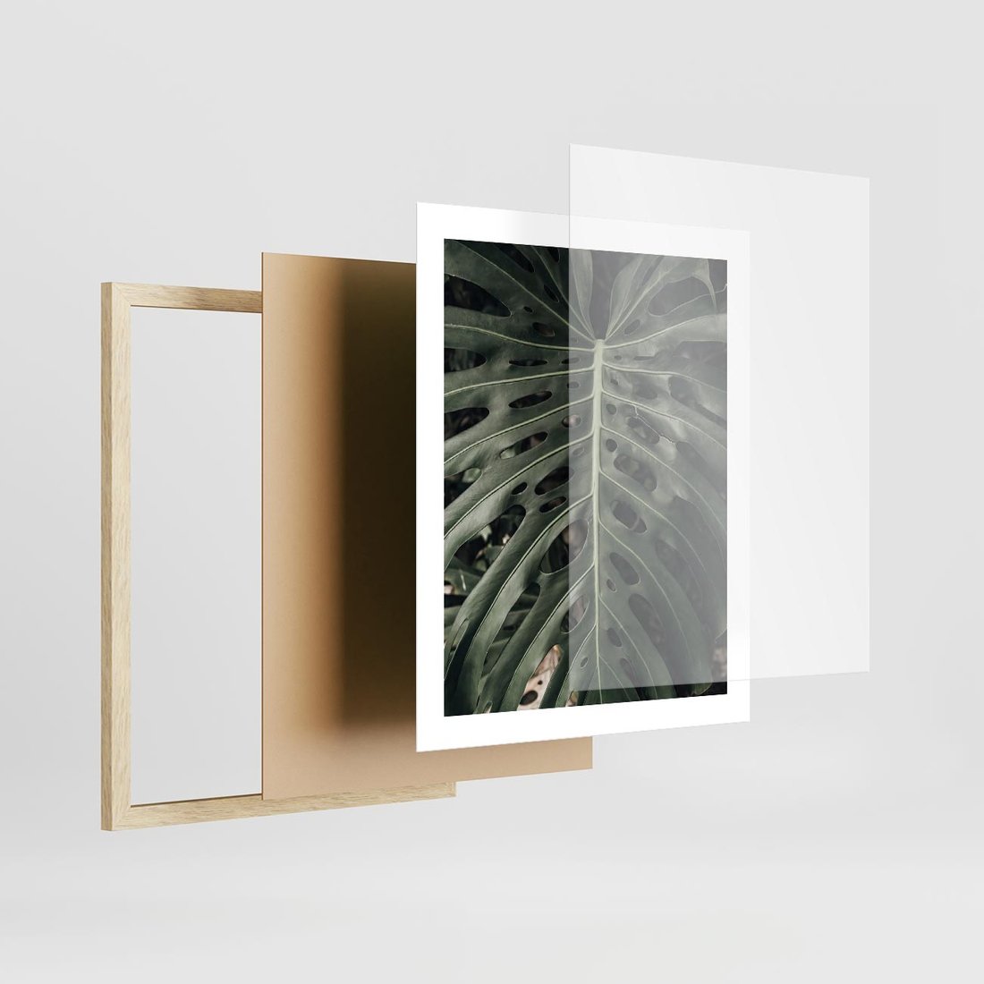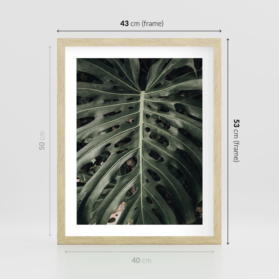 Plakat w ramie 40x50 - Majestatyczny Liść Monstery - liść monstery, majestatyczny liść - rama drewno
