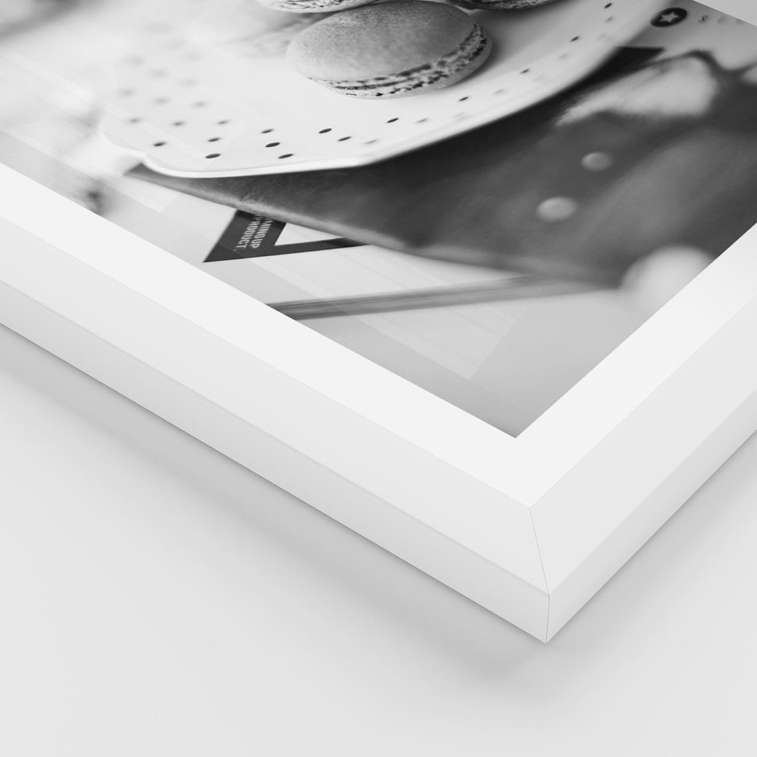 Plakat w ramie 40x50 - Makaroniki w Szarości - czarno biała fotografia, plakat - rama biała