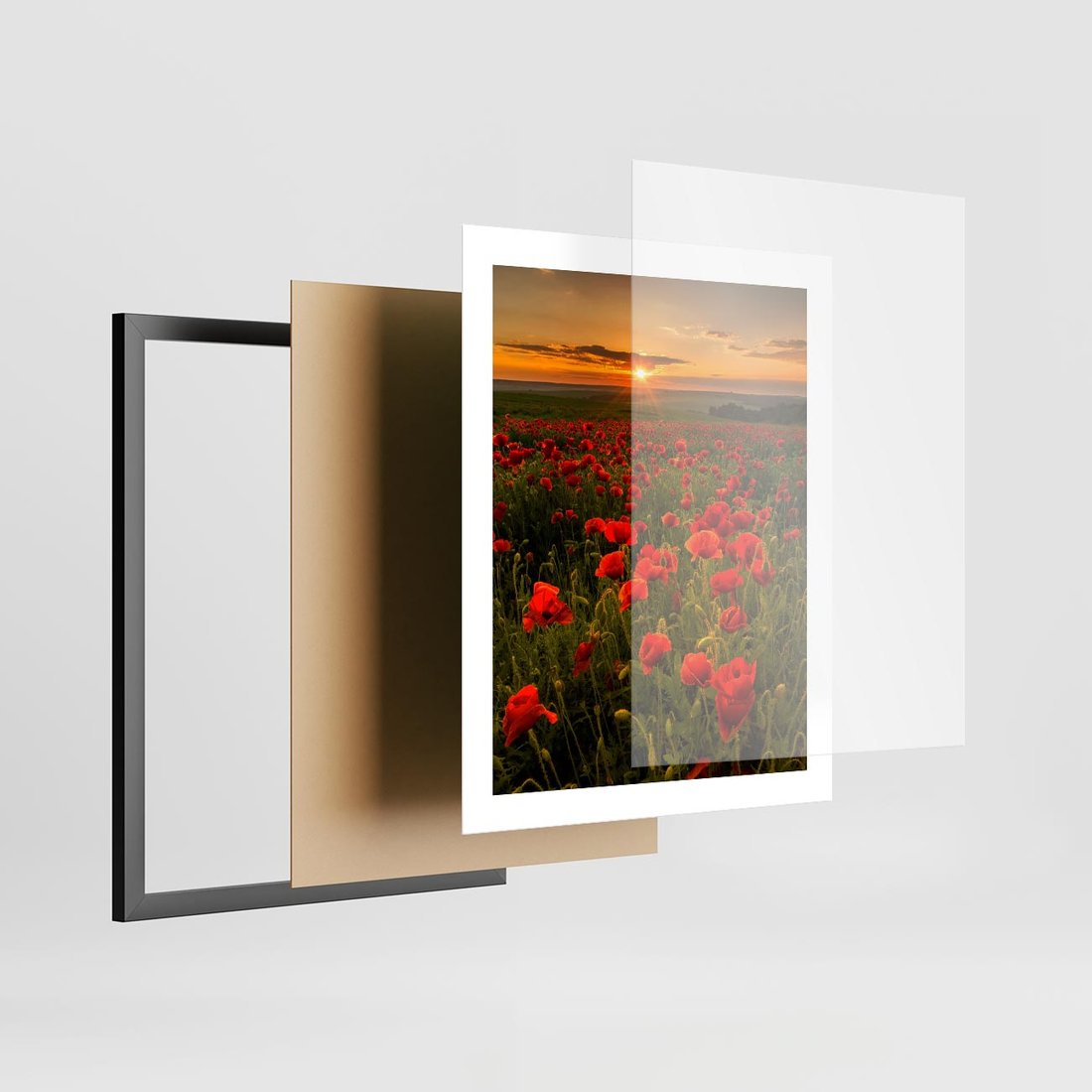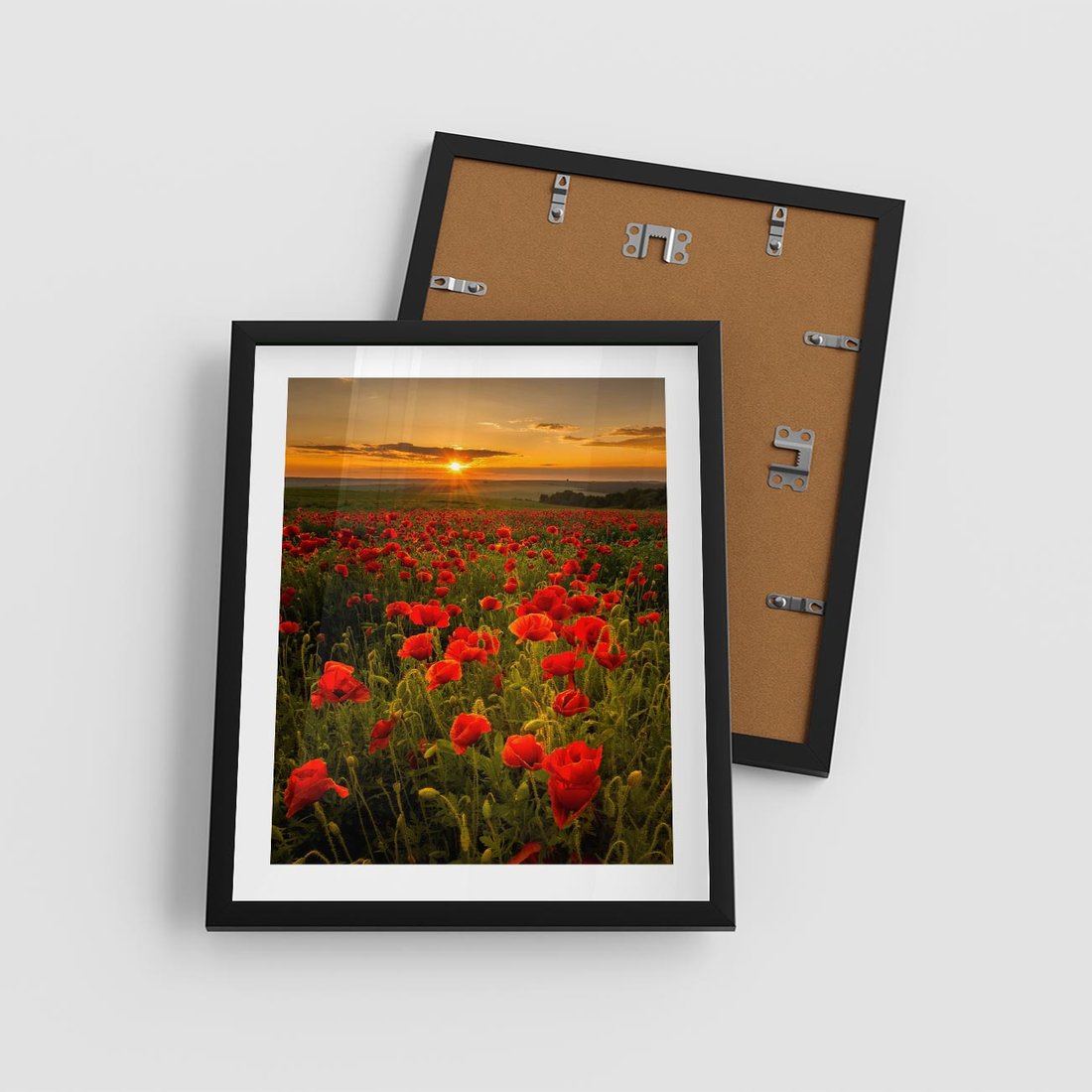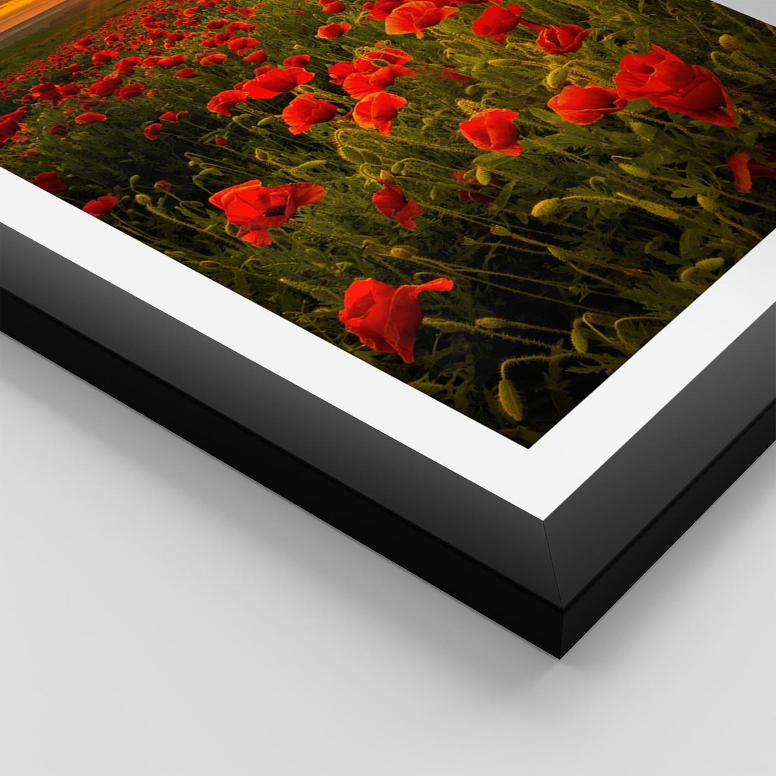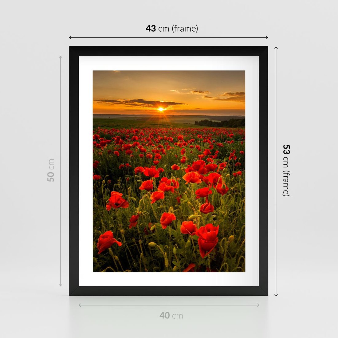 Plakat w ramie 40x50 - Maki przy zachodzie słońca - maki, zachód - rama czarna