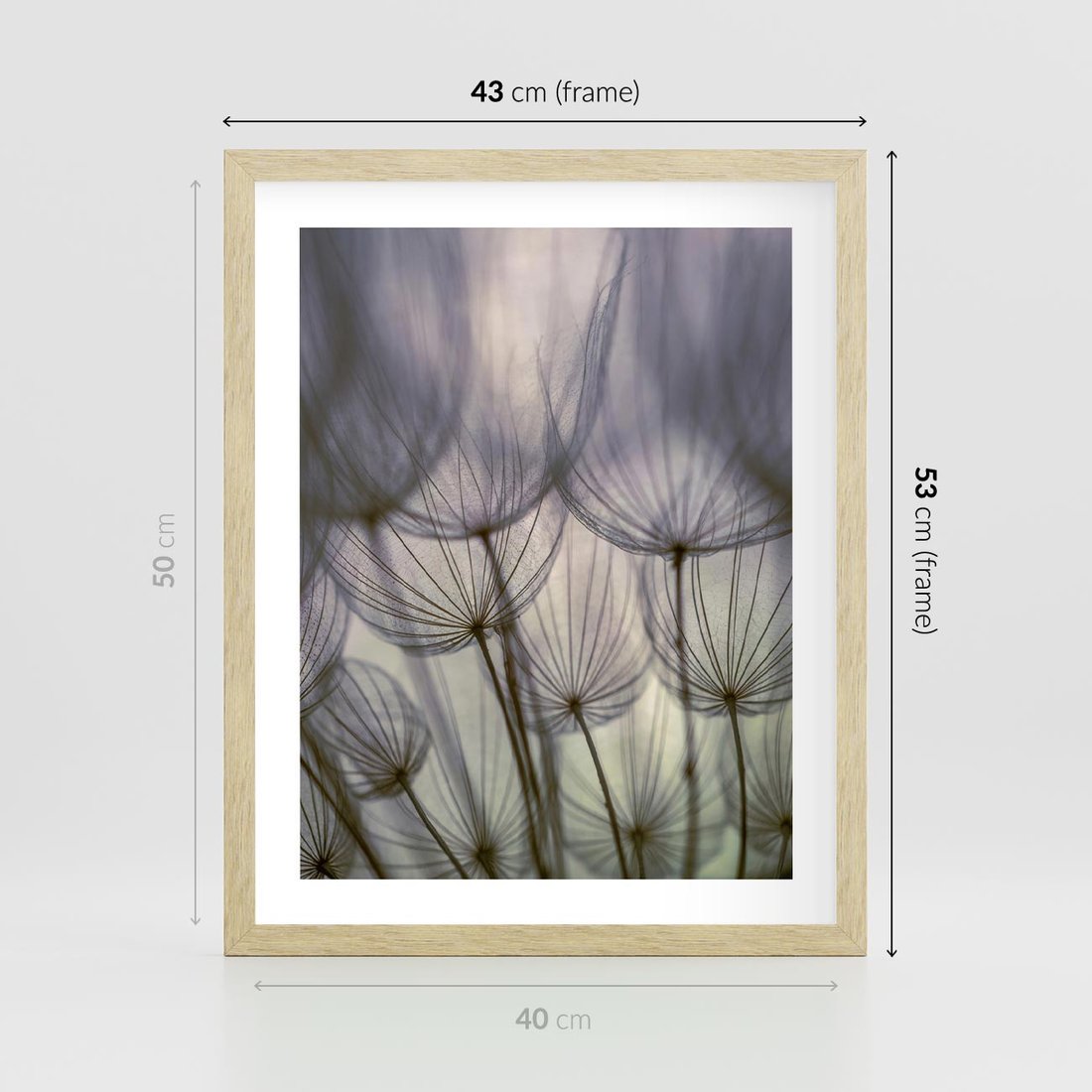Plakat w ramie 40x50 - Makro dmuchawiec - piękno drobnych detali - dmuchawce, makro - rama drewno