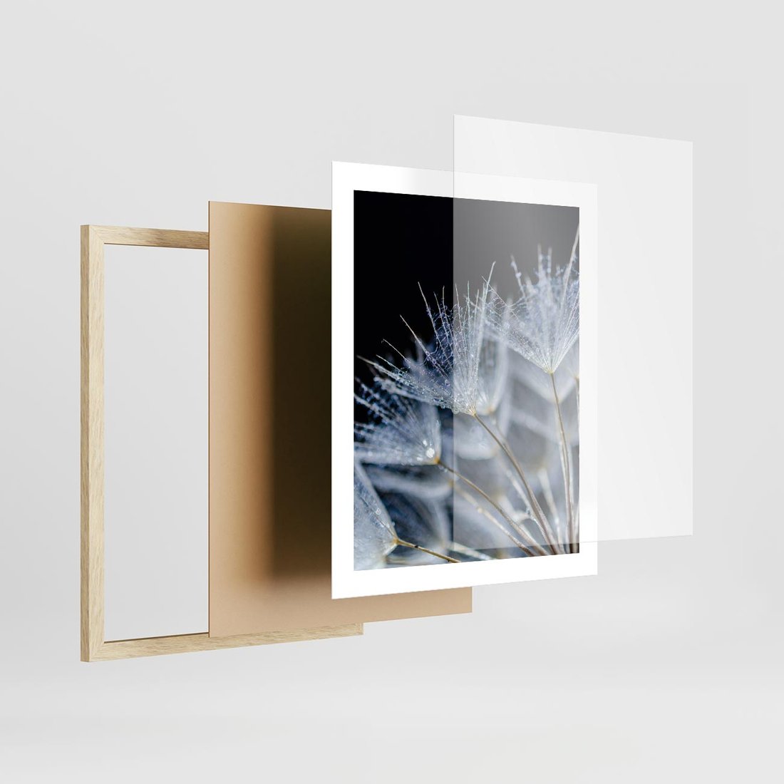 Plakat w ramie 40x50 - Makro piękno dmuchawców - makro, dmuchawce - rama drewno