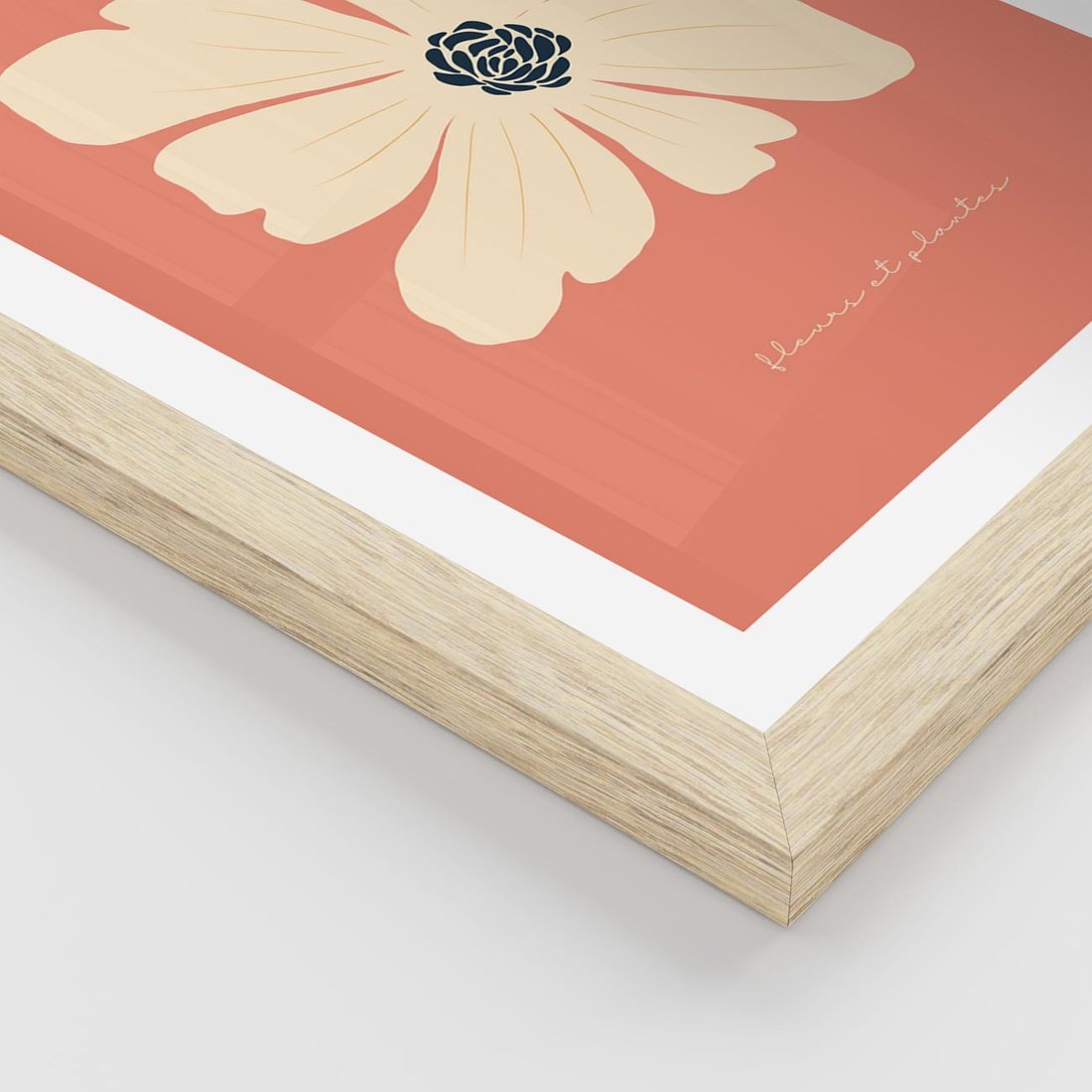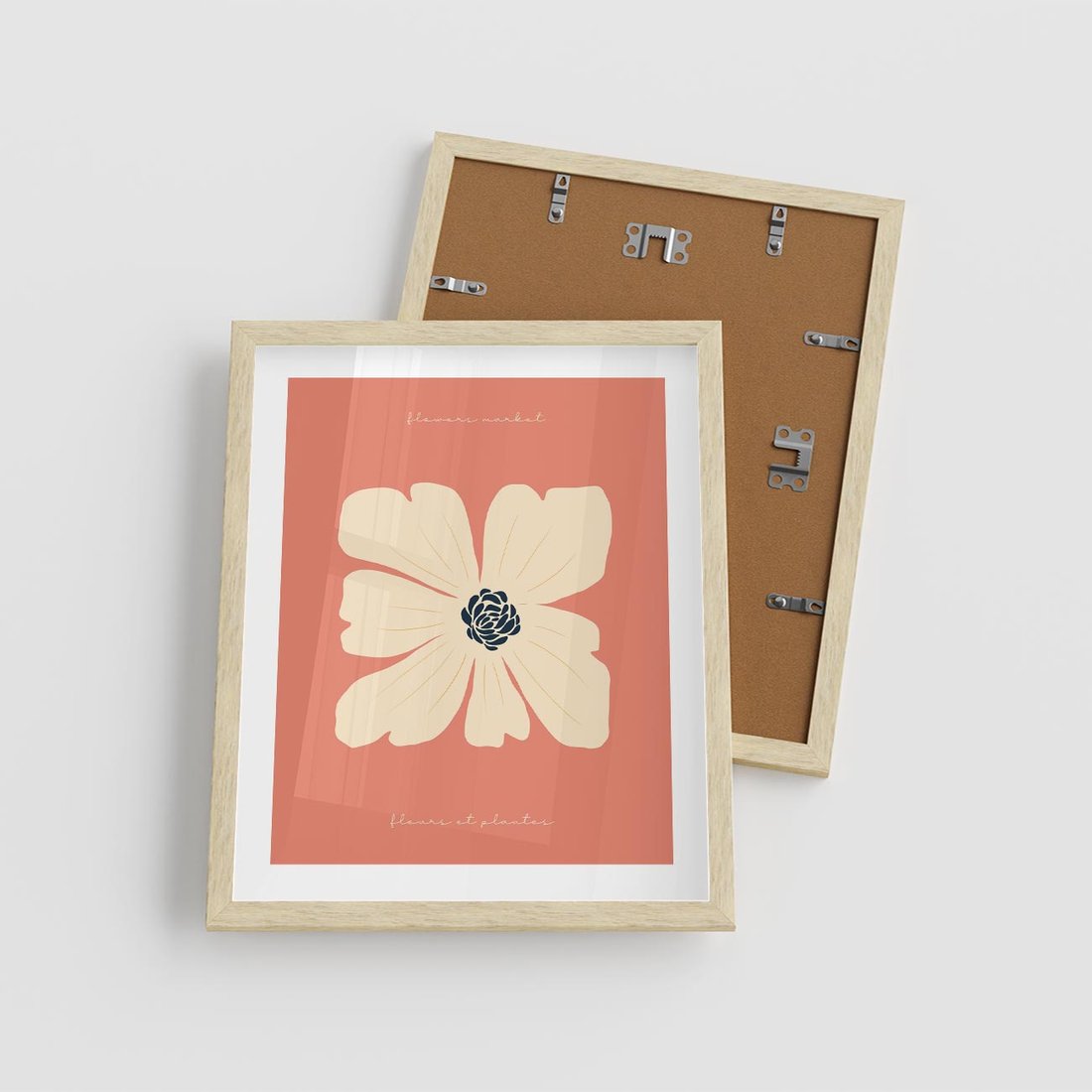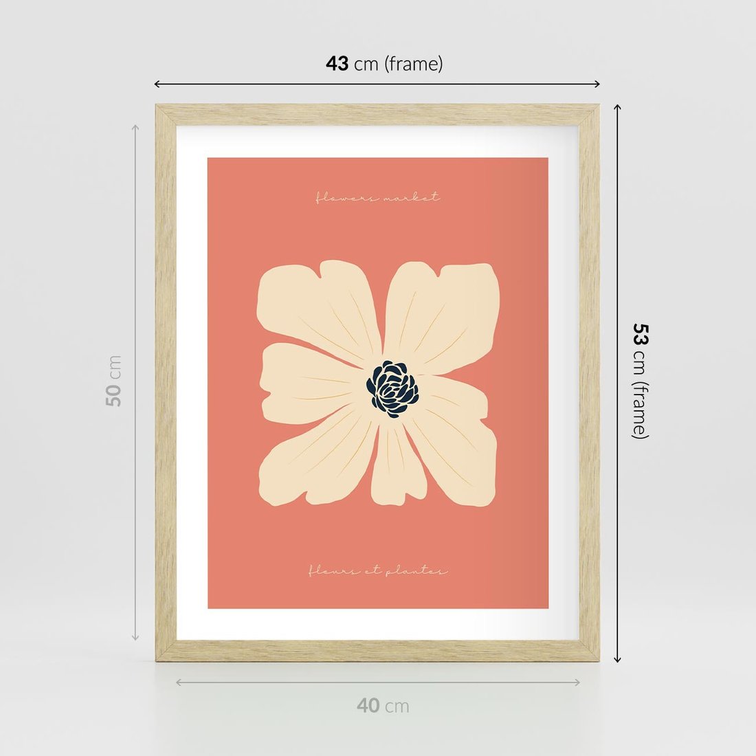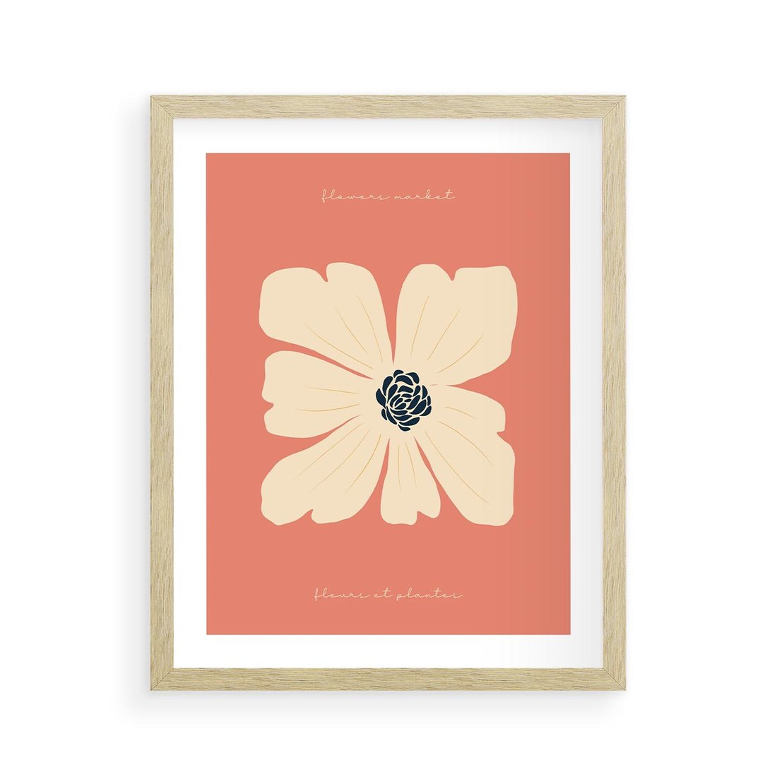 Plakat w ramie 40x50 - Malowane Kolorowe Echa - minimalistyczna grafika, biały kwiat na różowym tle - rama drewno