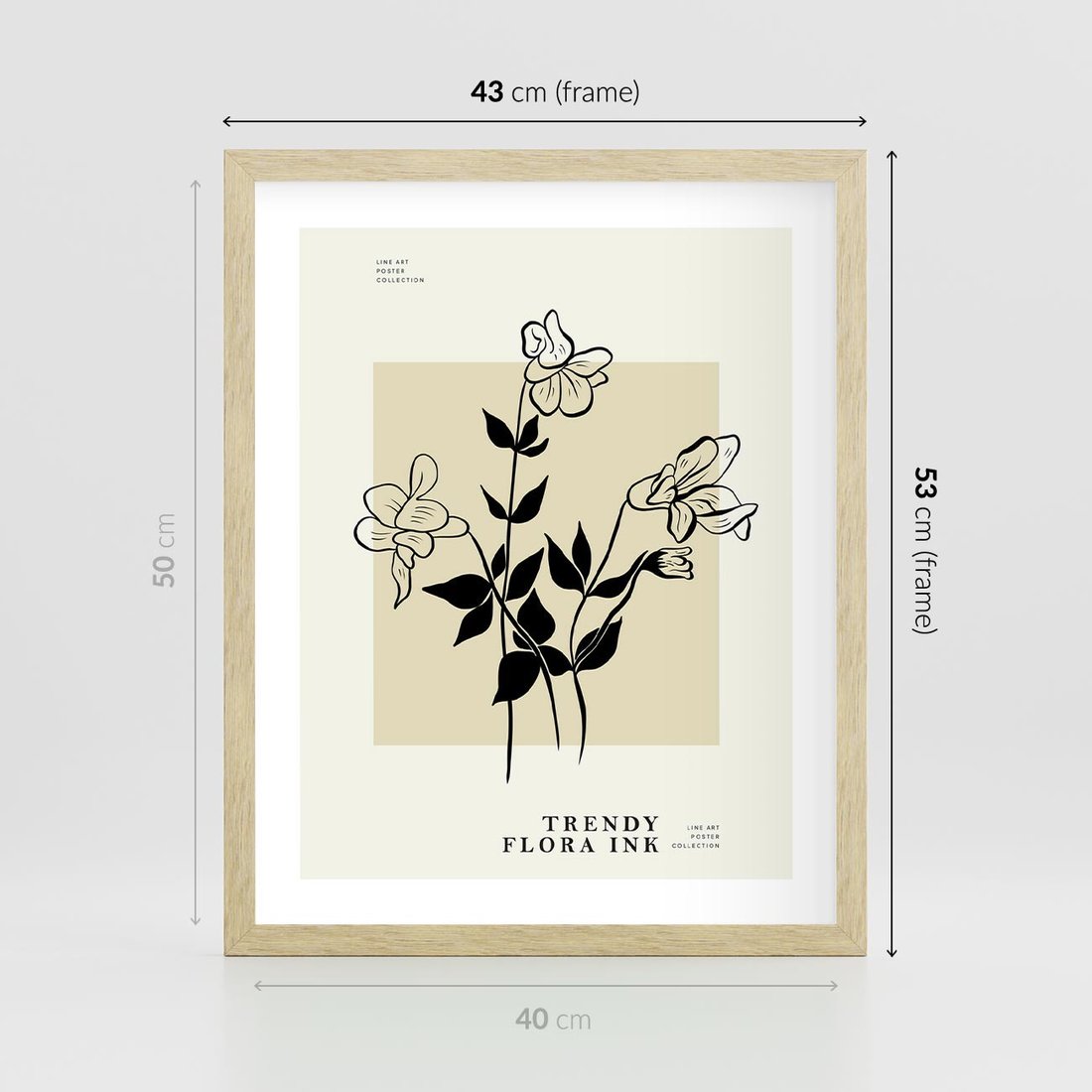 Plakat w ramie 40x50 - Malowane szkicowe tęsknoty - kwiaty, typografia - rama drewno