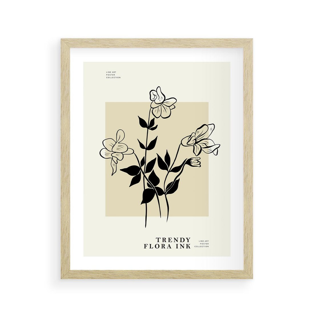 Piękne kwiaty w połączeniu z elegancką typografią tworzą minimalistyczną sztukę. Delikatny beżowy akcent dodaje subtelności całej kompozycji. To obraz, który wprowadzi do Twojego wnętrza przyjemny akcent roślinności, zachowując jednocześnie estetykę minimalizmu.