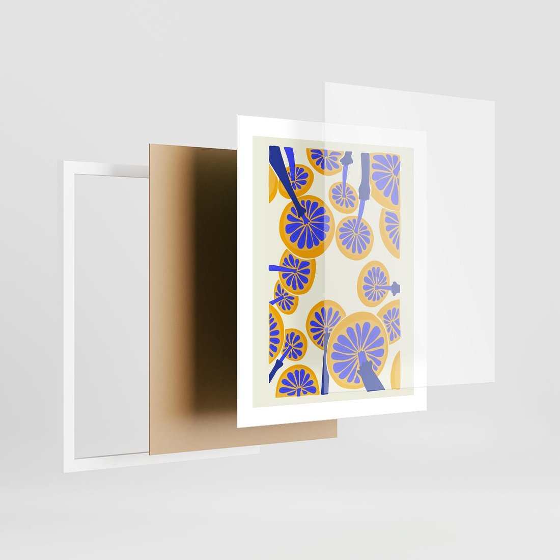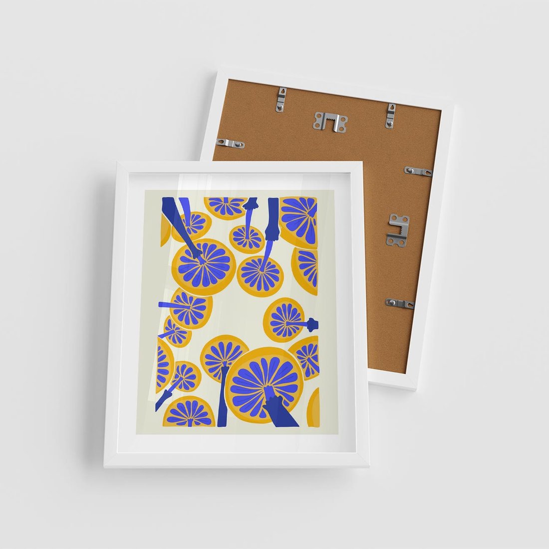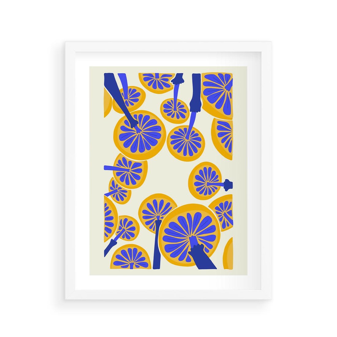 Plakat w ramie 40x50 - Malowane w słońcu - abstrakcyjna kompozycja, grzyby - rama biała