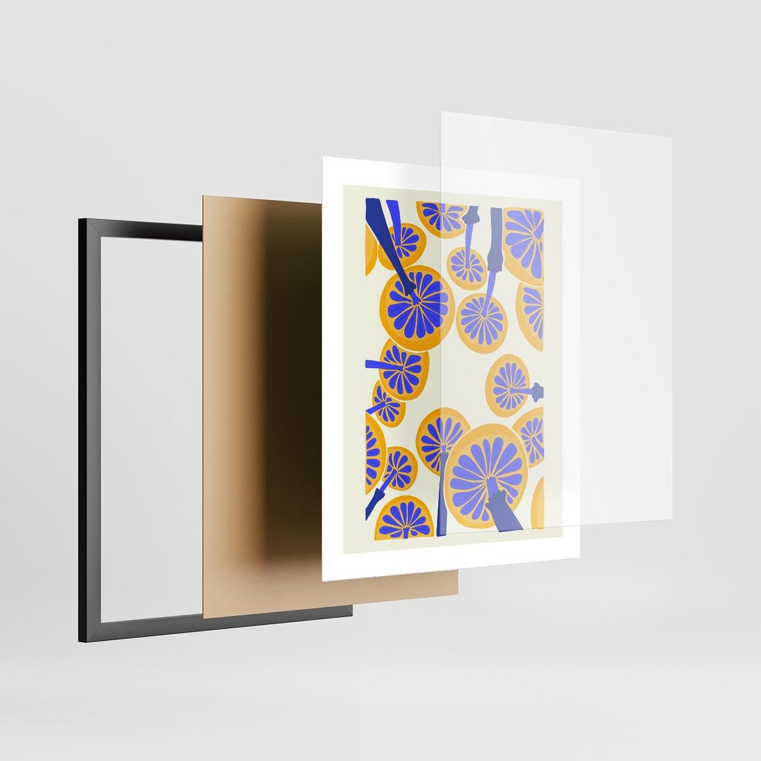 Plakat w ramie 40x50 - Malowane w słońcu - abstrakcyjna kompozycja, grzyby - rama czarna