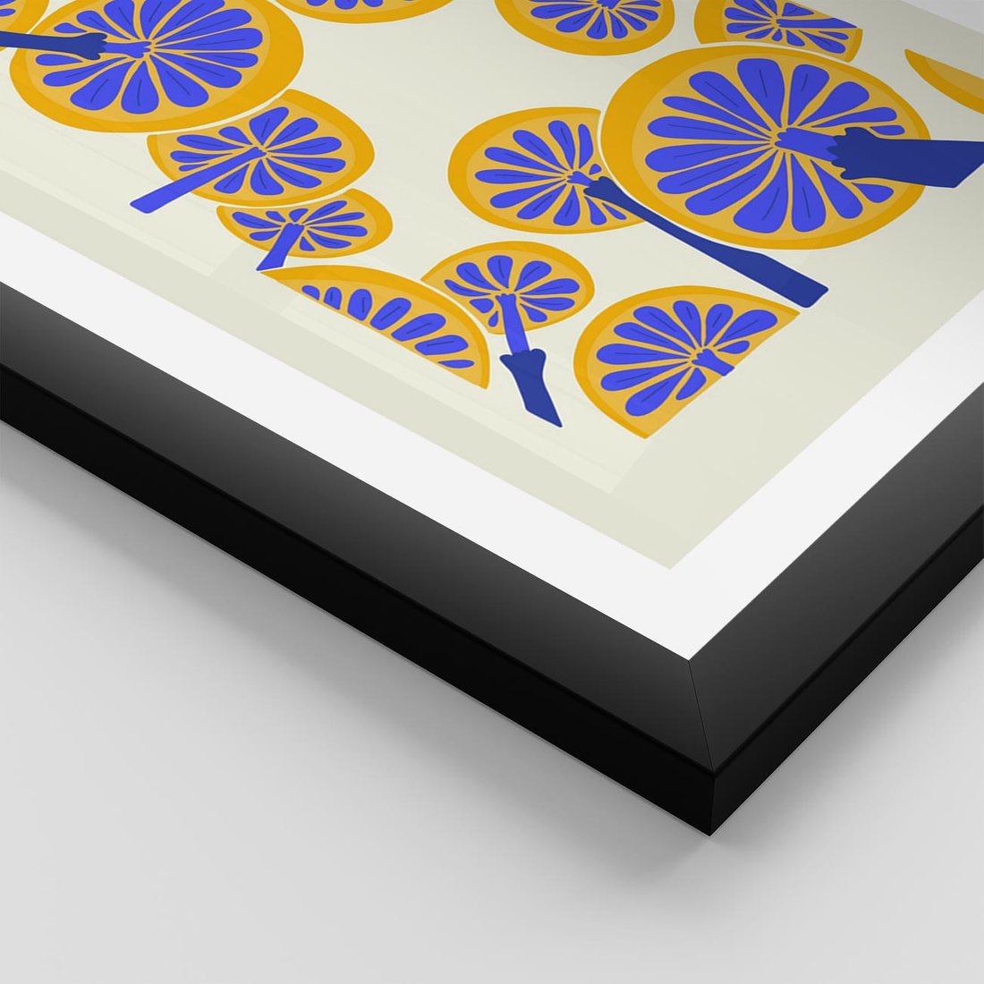 Przenieś się w świat kreatywnej ekspresji z tą niezwykłą sztuką. Żółto-niebieska paleta podkreśla abstrakcyjne detale grzybów, tworząc unikalną kompozycję, która ożywi każde wnętrze.