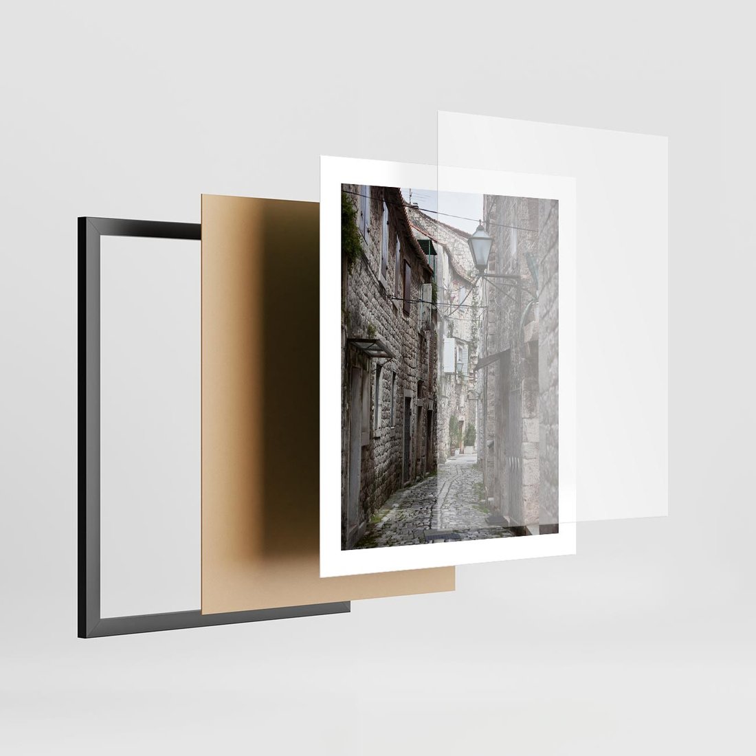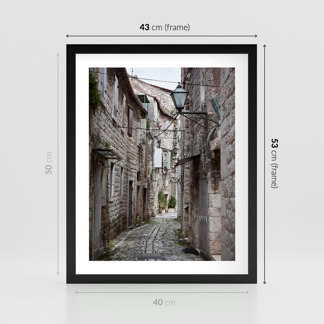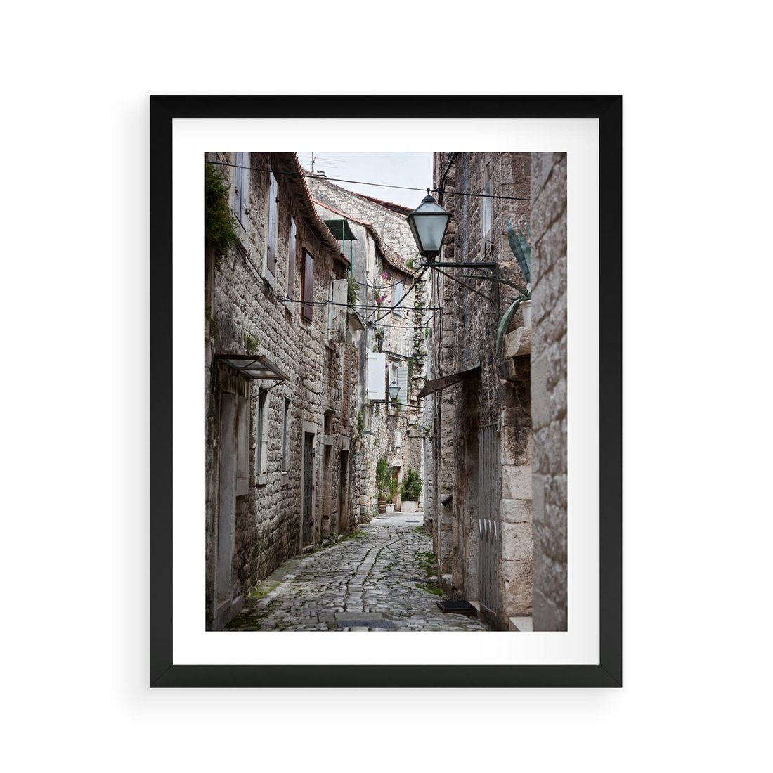 Plakat w ramie 40x50 - Malownicza uliczka we Włoszech - uliczka, Włoch - rama czarna
