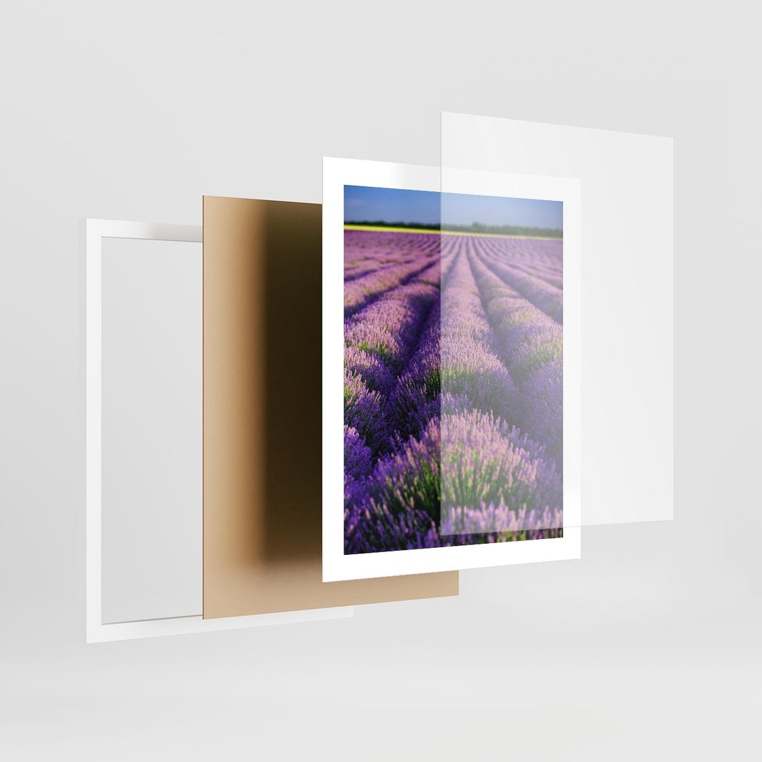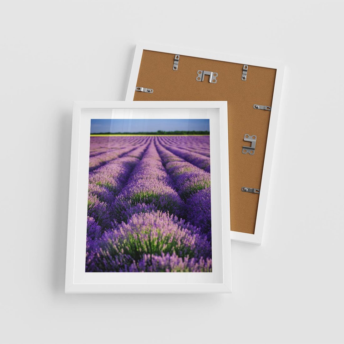 Plakat w ramie 40x50 - Malownicze Pole Lawendy - lawenda, pole - rama biała