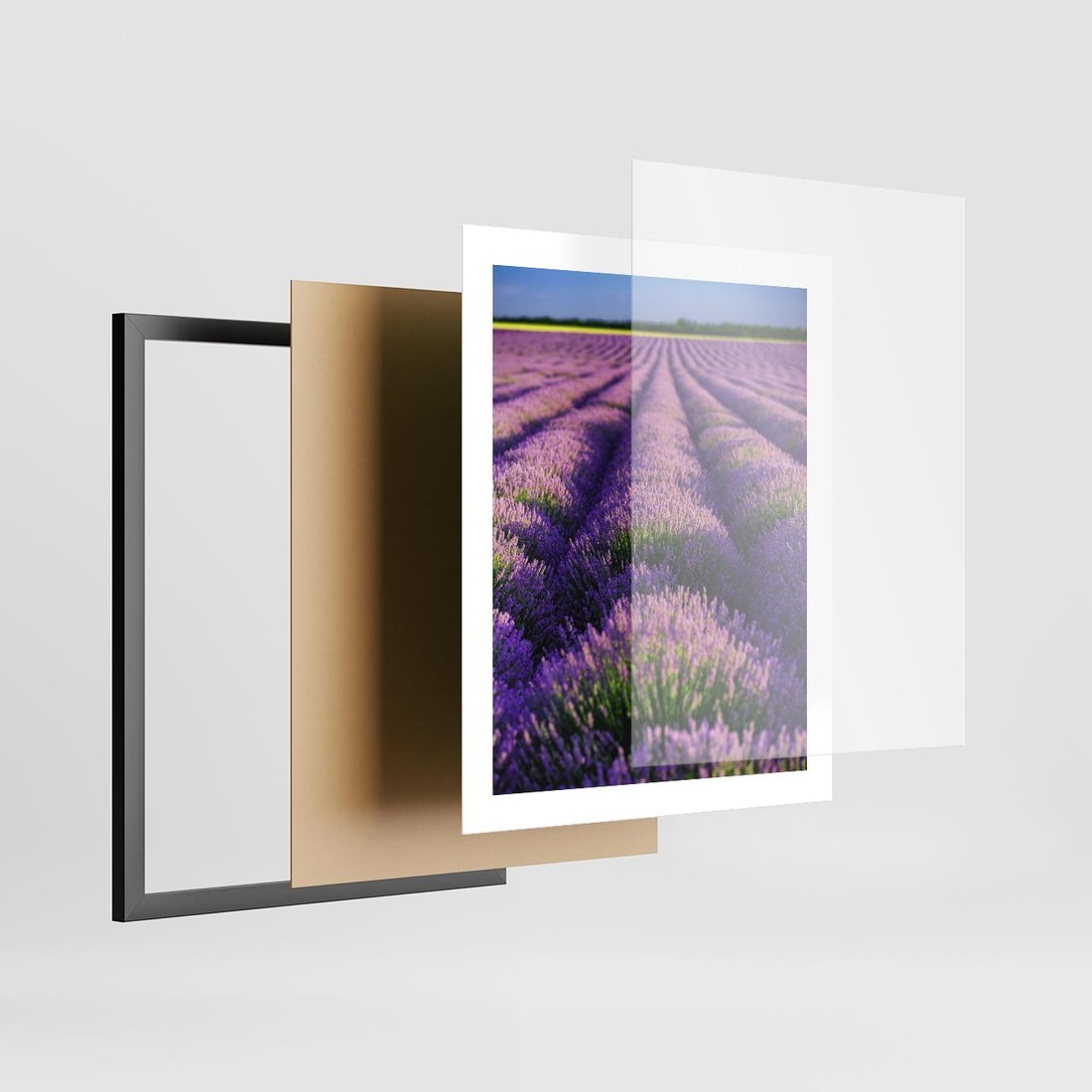 Plakat w ramie 40x50 - Malownicze Pole Lawendy - lawenda, pole - rama czarna