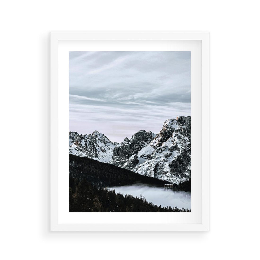 Plakat w ramie 40x50 - Malowniczy Krajobraz ze Śniegiem - góry, śnieg - rama biała