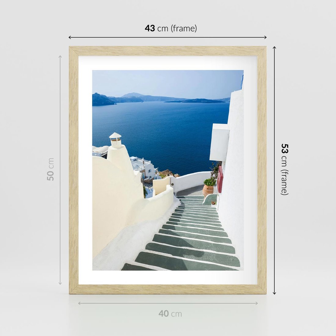 Plakat w ramie 40x50 - Malowniczy urok wyspy - Santorini, schodki - rama drewno