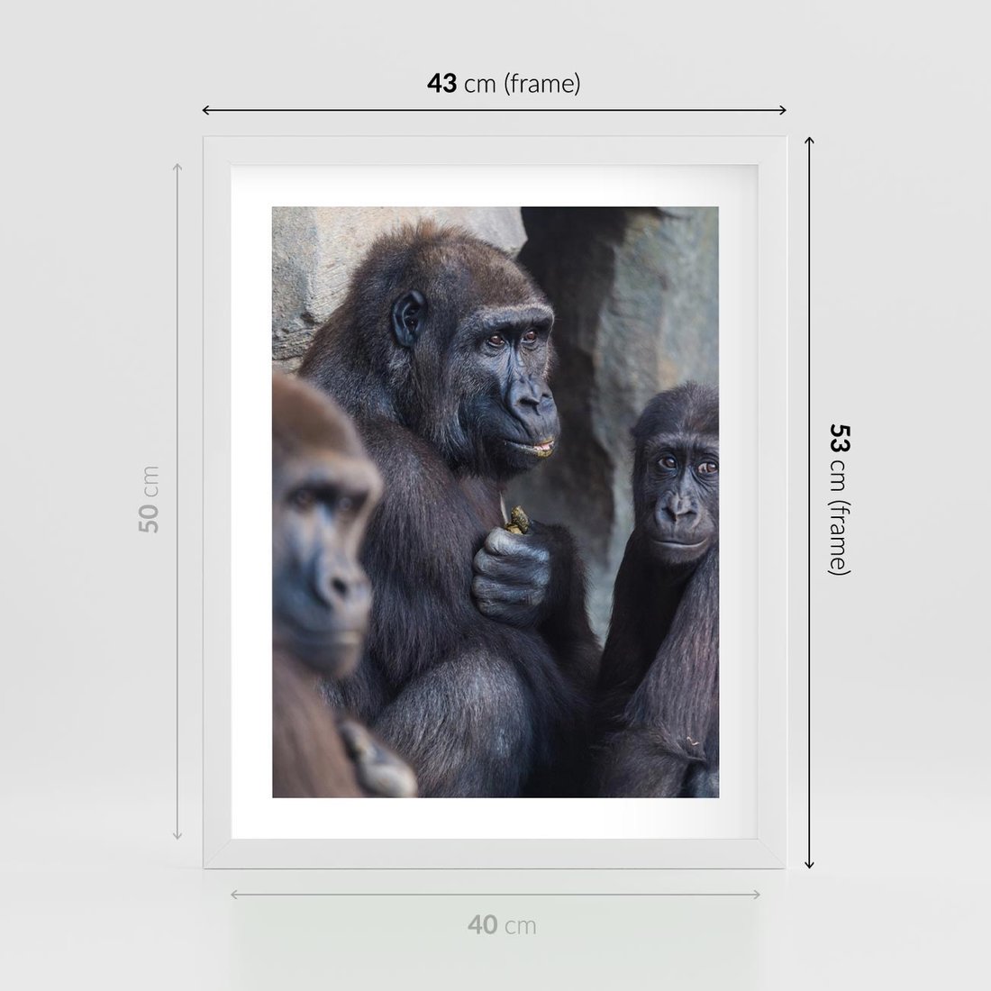 Plakat w ramie 40x50 - Małpy w ich naturalnym środowisku - małpy, szympansy - rama biała