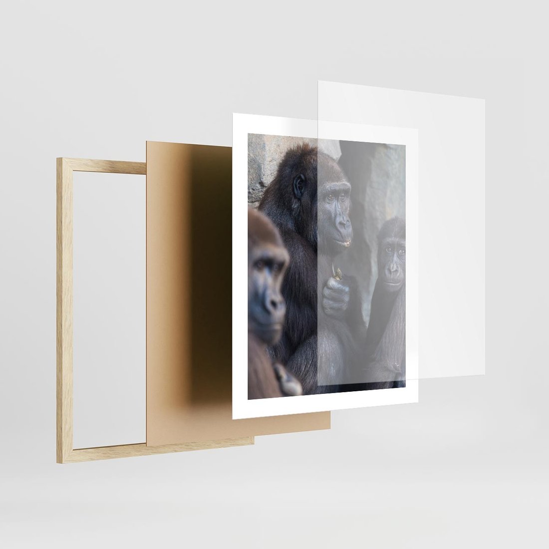 Plakat w ramie 40x50 - Małpy w ich naturalnym środowisku - małpy, szympansy - rama drewno