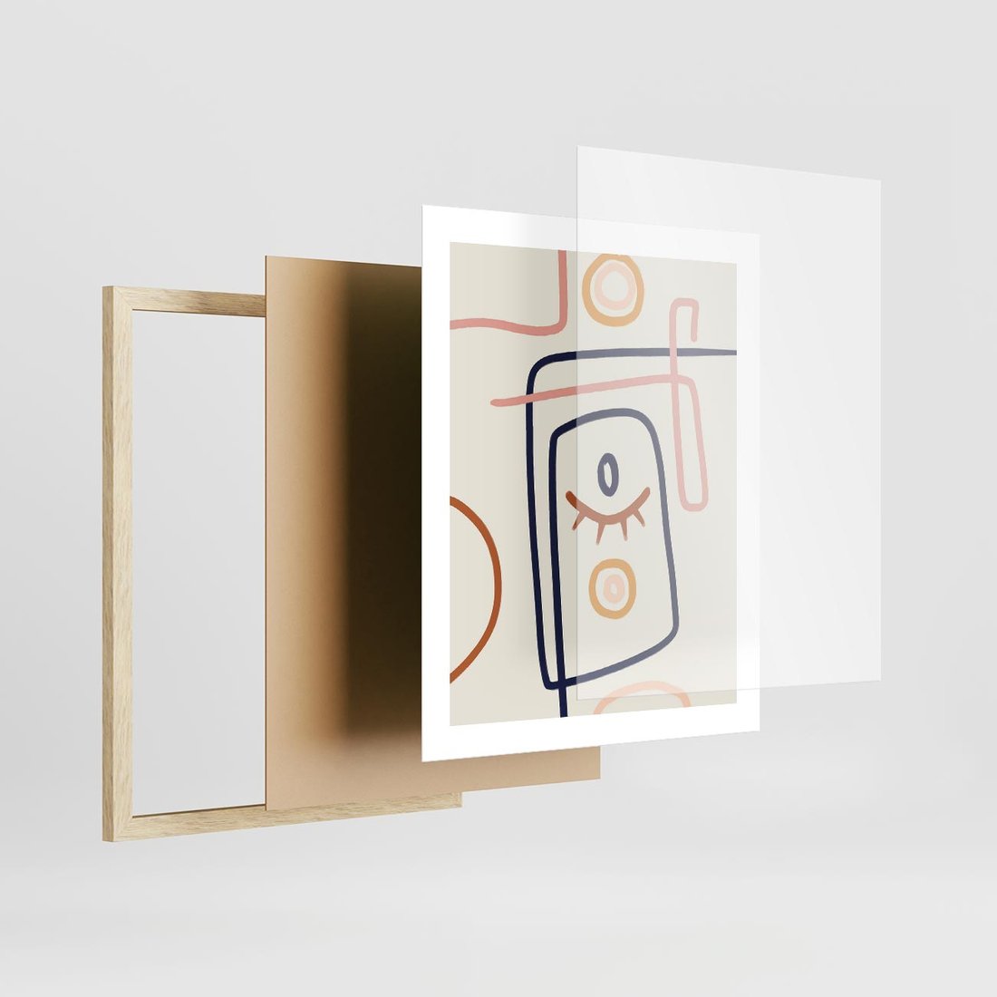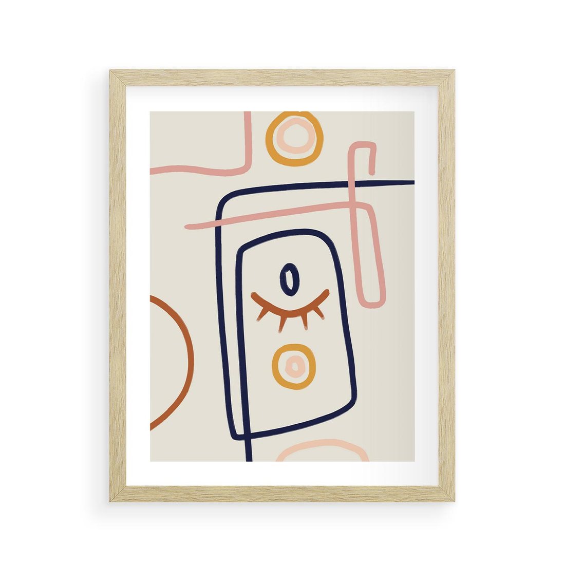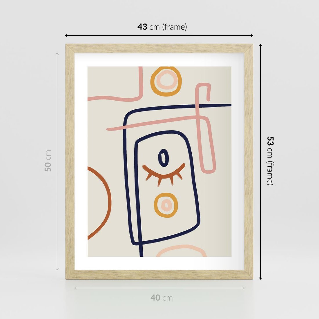 Plakat w ramie 40x50 - Manifestacje Dziwności - abstrakcja w stylu picasso, beżowe tło - rama drewno
