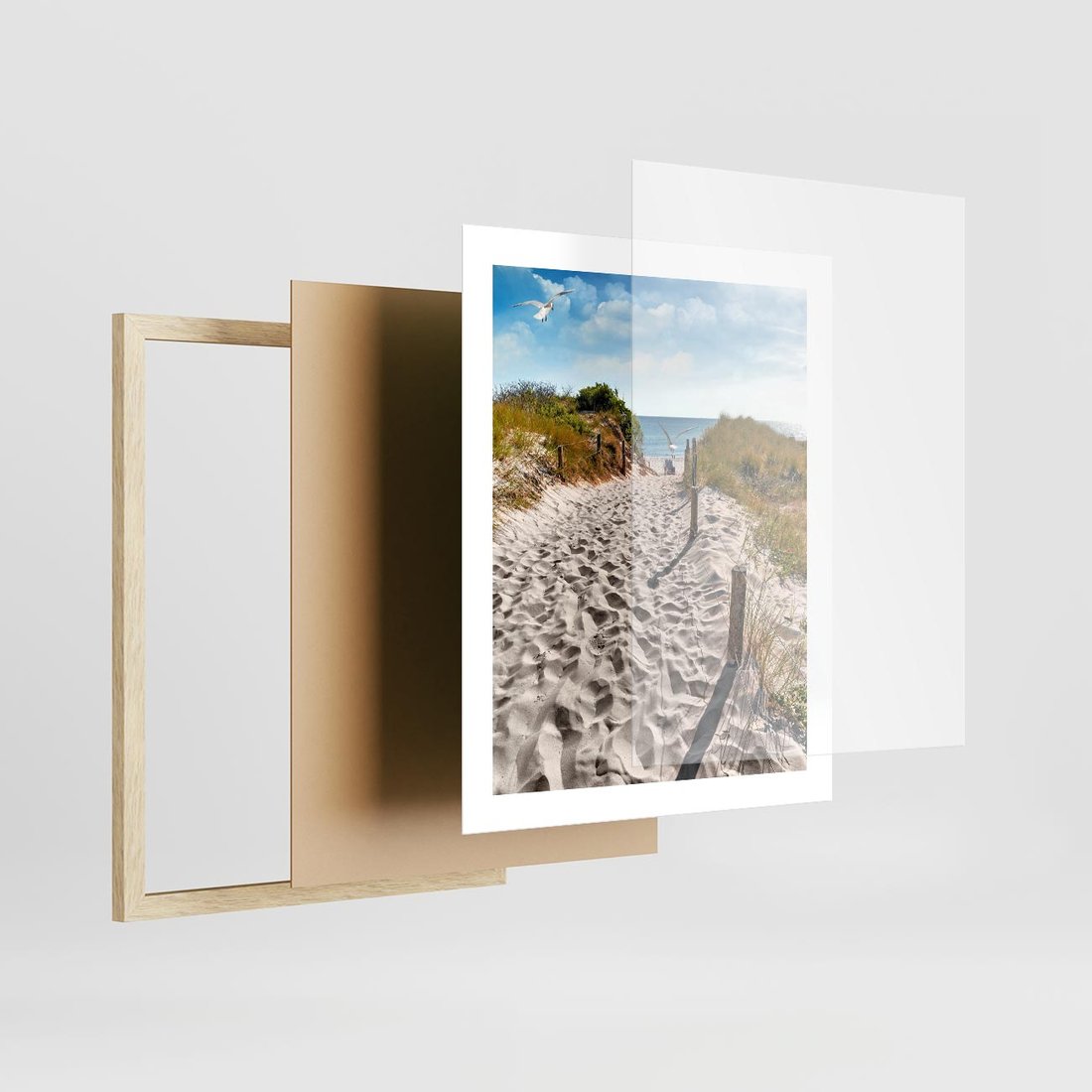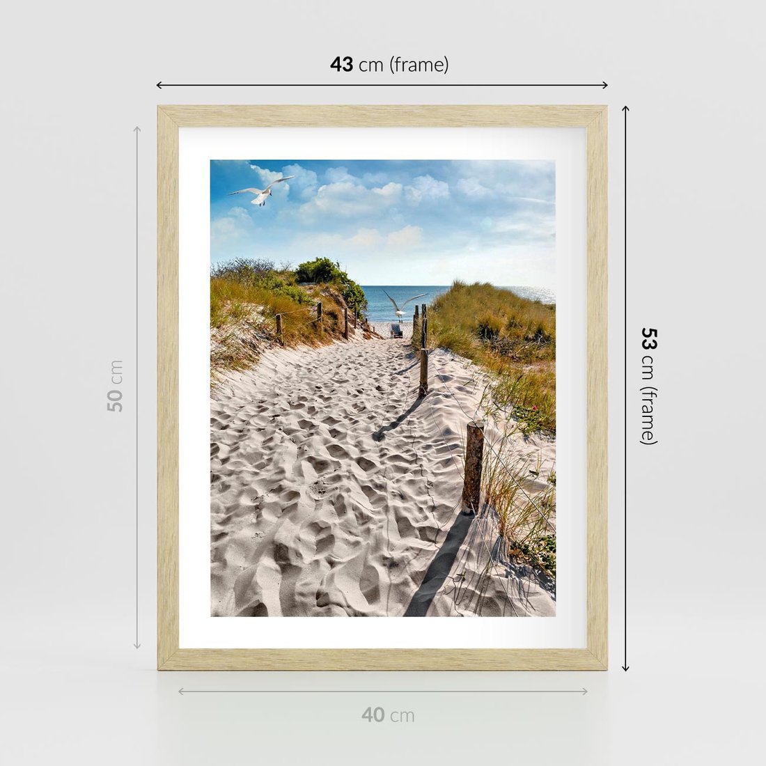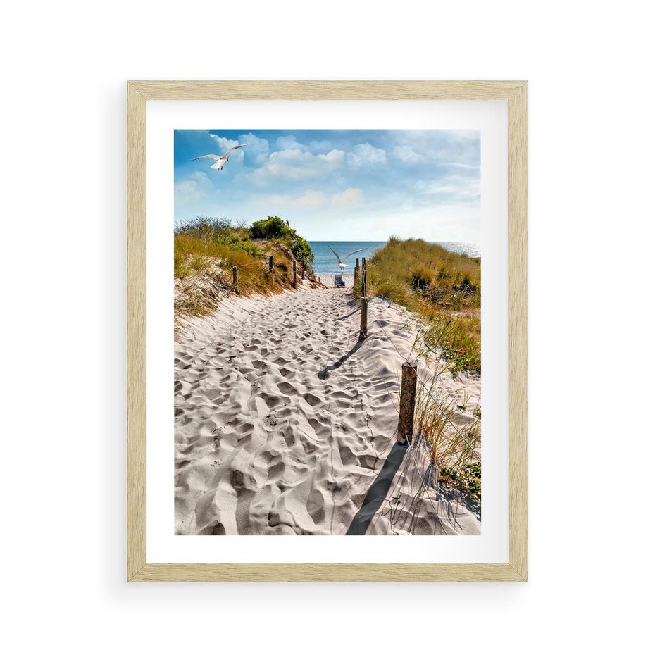 Plakat w ramie 40x50 - Mewy nad Morzem - plaża, mewy - rama drewno