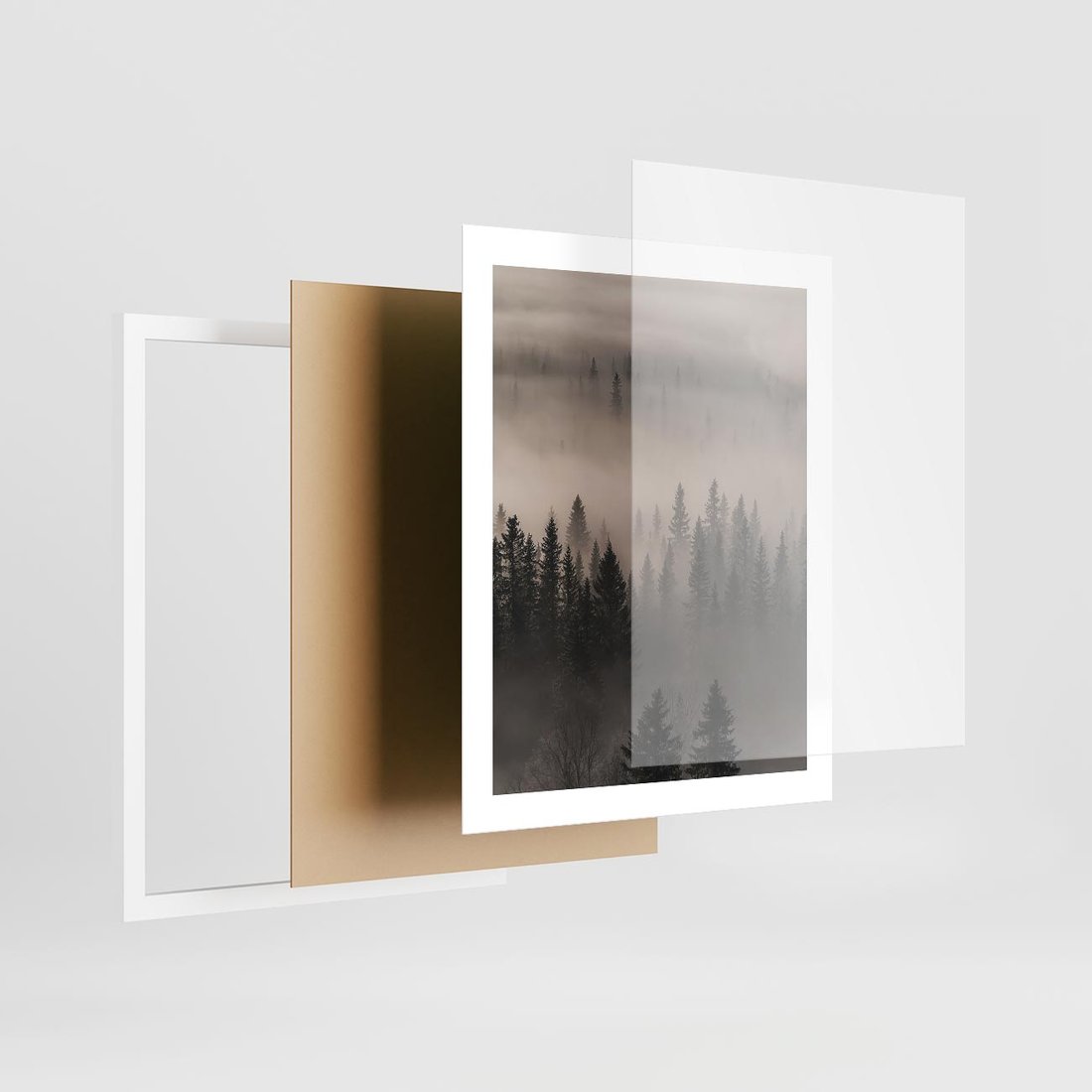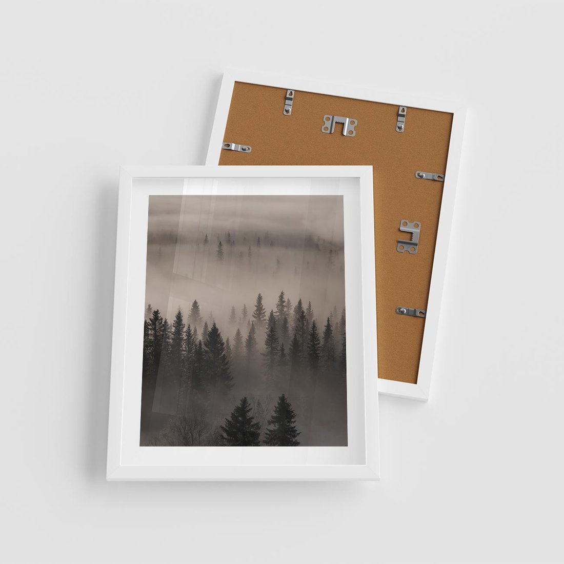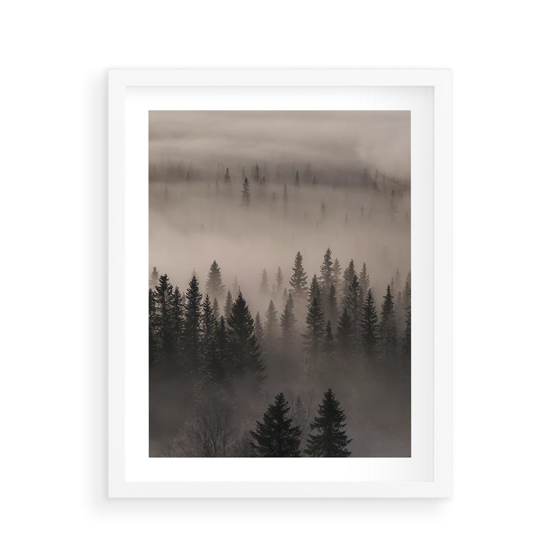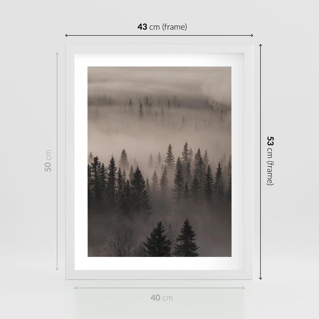 Plakat w ramie 40x50 - Mglista Opowieść Lasu - las, mgła - rama biała