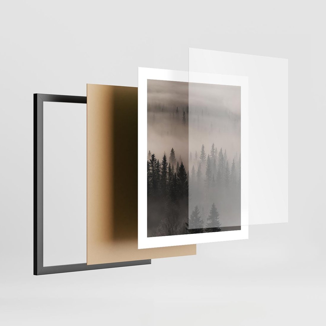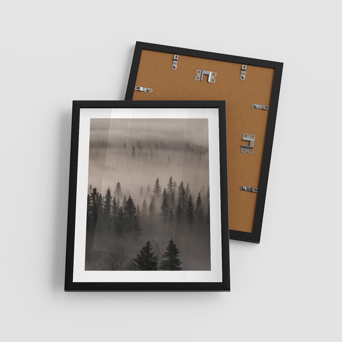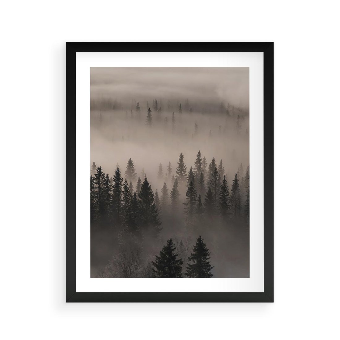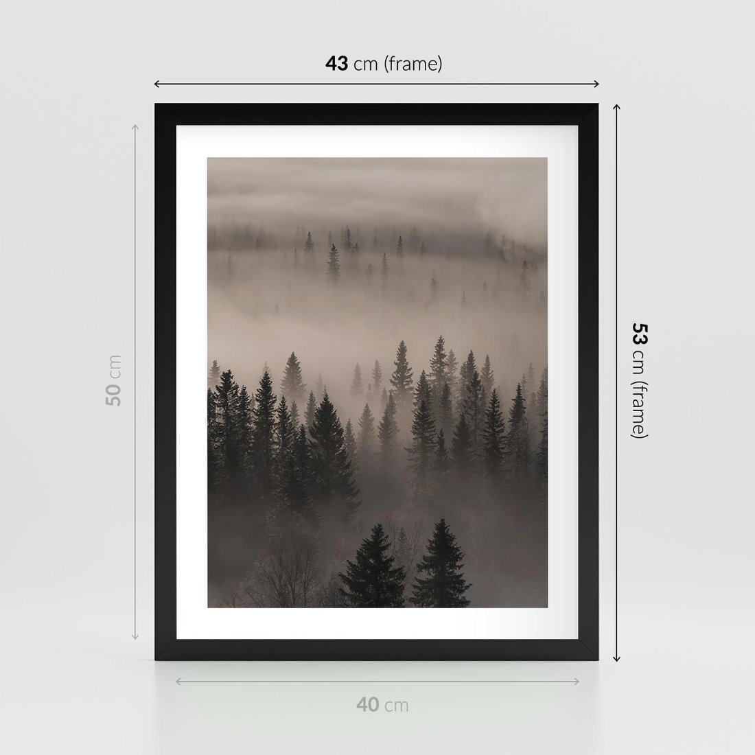 Plakat w ramie 40x50 - Mglista Opowieść Lasu - las, mgła - rama czarna