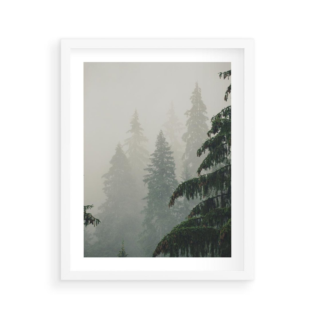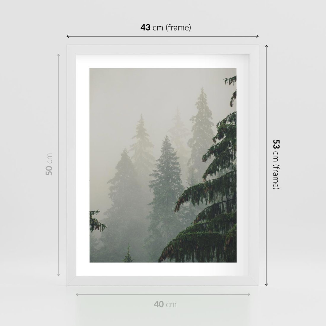 Plakat w ramie 40x50 - Mglista przemiana lasu - las, mgła - rama biała