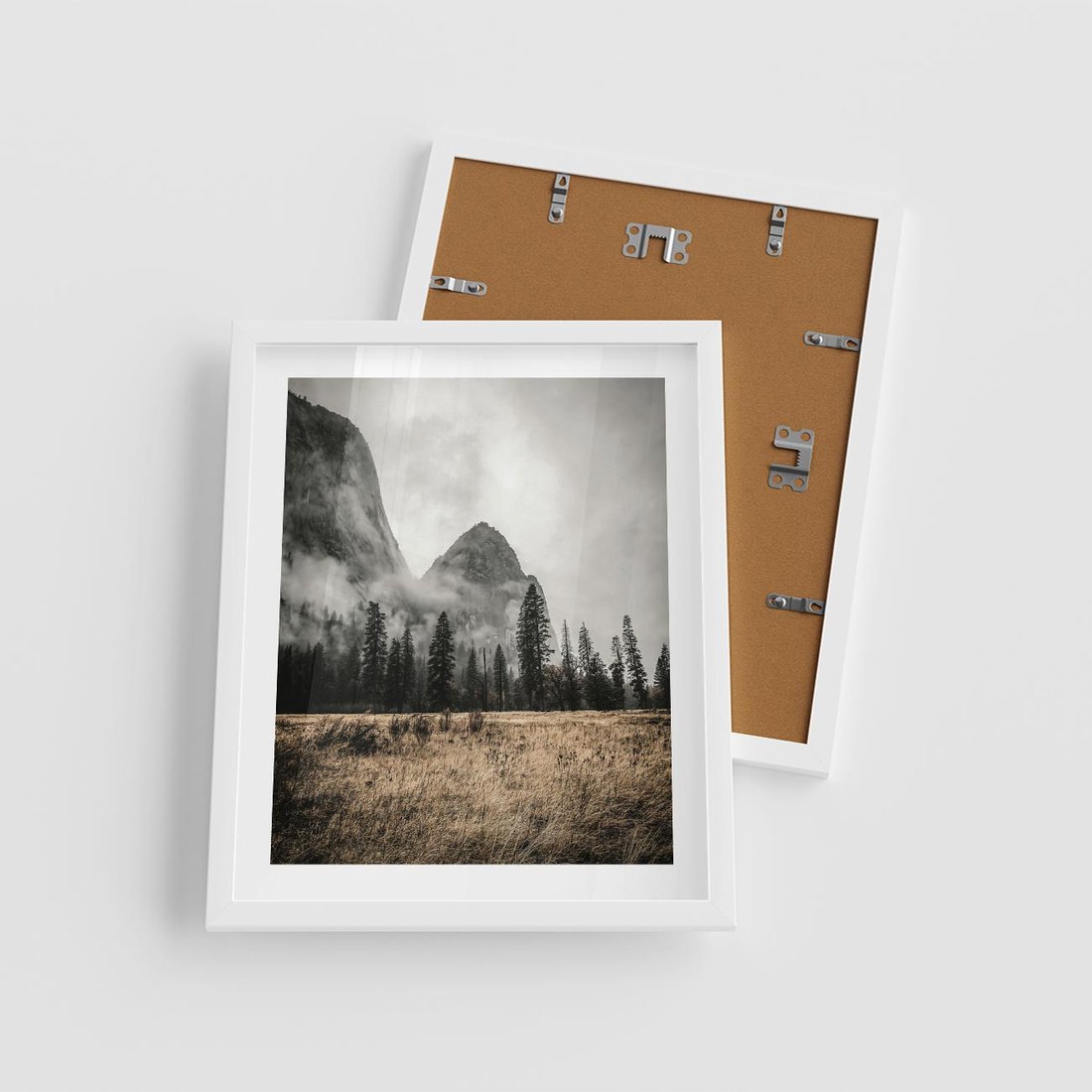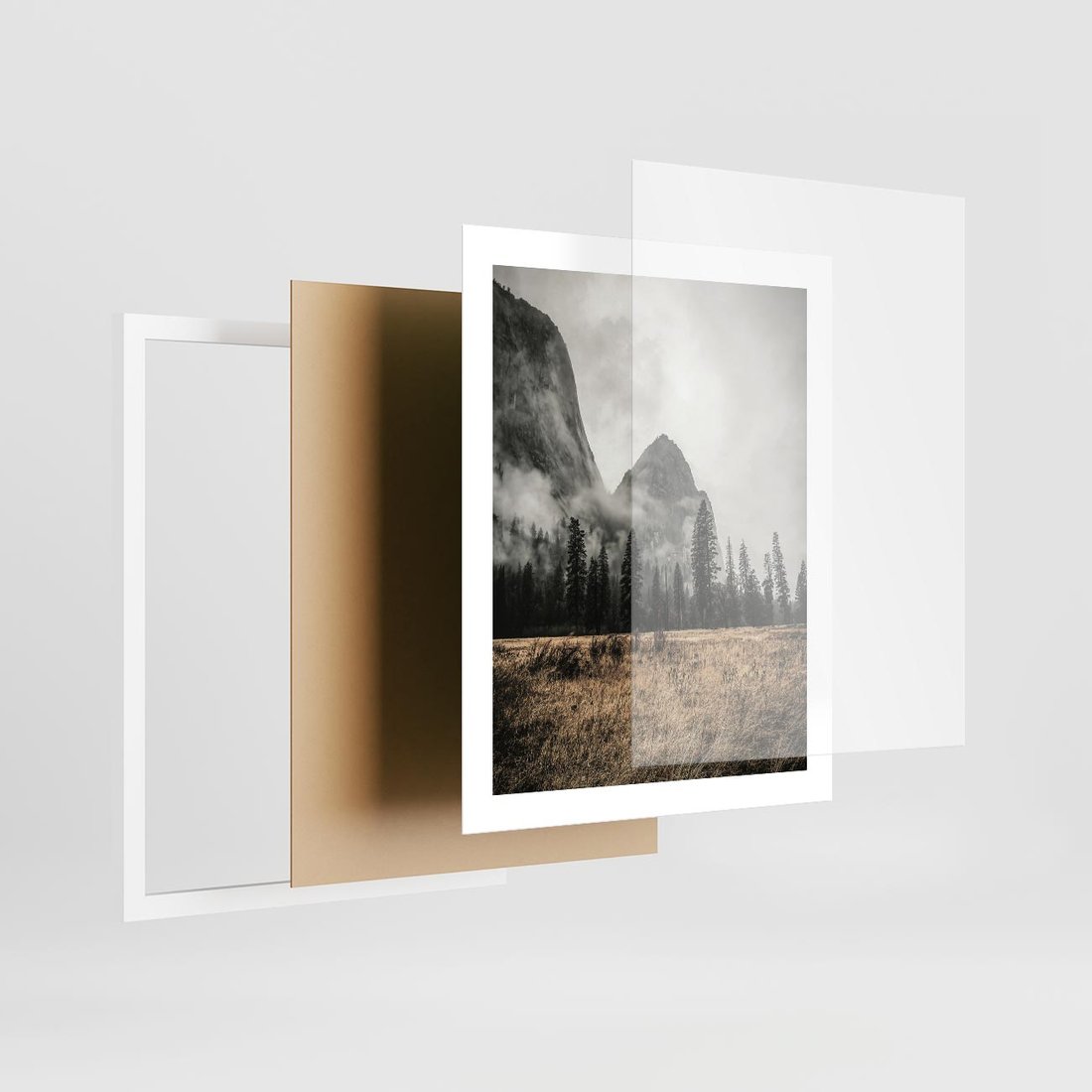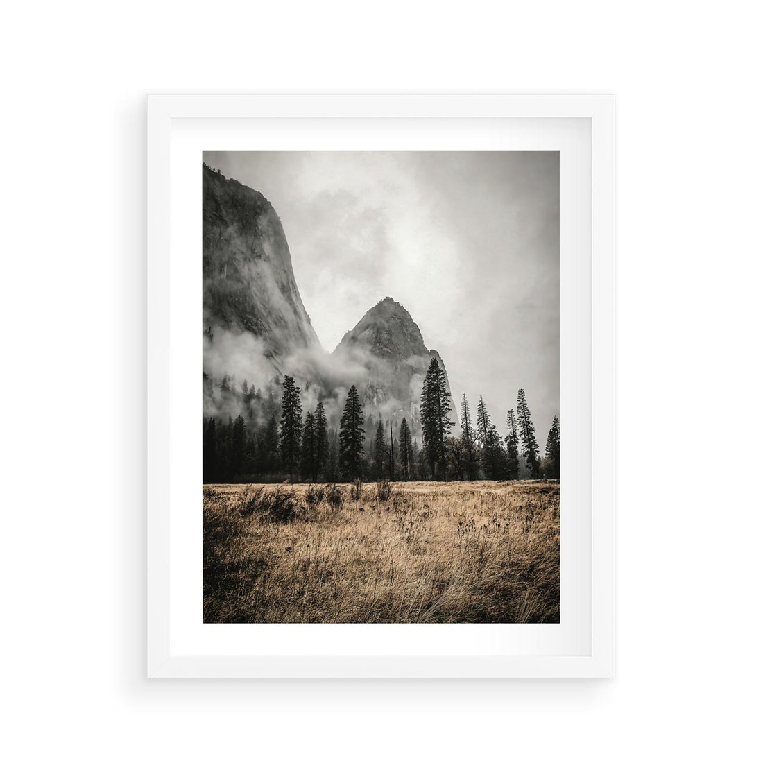 Plakat w ramie 40x50 - Mglisty Pejzaż Górski: Urok Niewidzialnośc - góry, krajobraz - rama biała