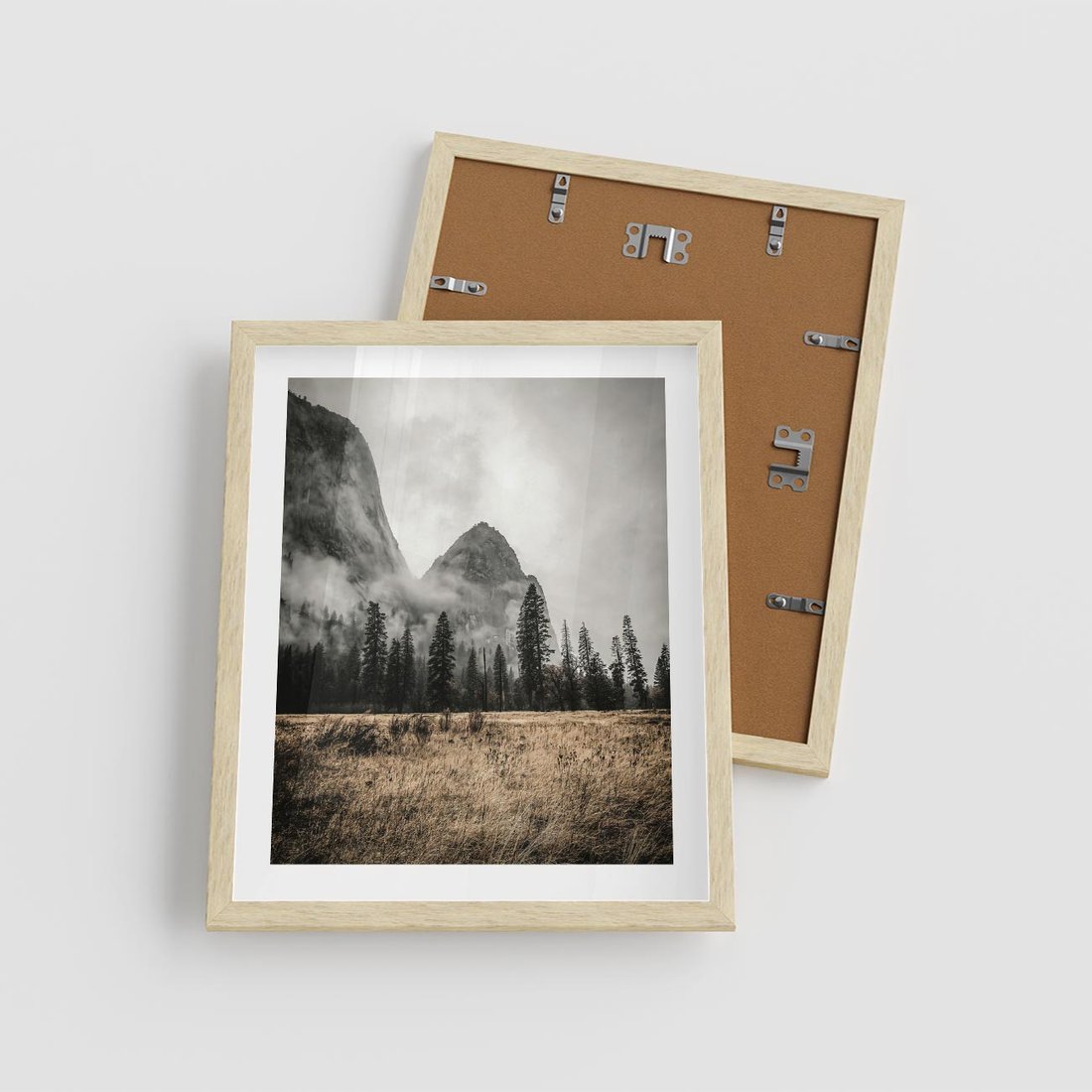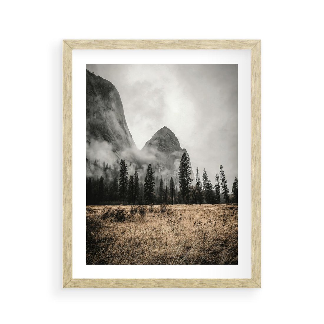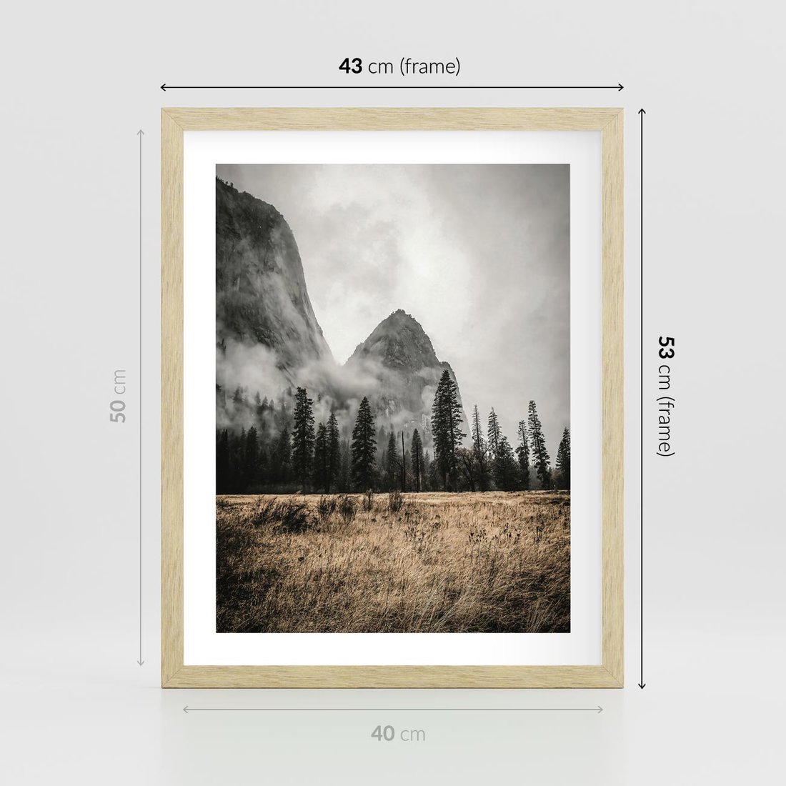 Plakat w ramie 40x50 - Mglisty Pejzaż Górski: Urok Niewidzialnośc - góry, krajobraz - rama drewno