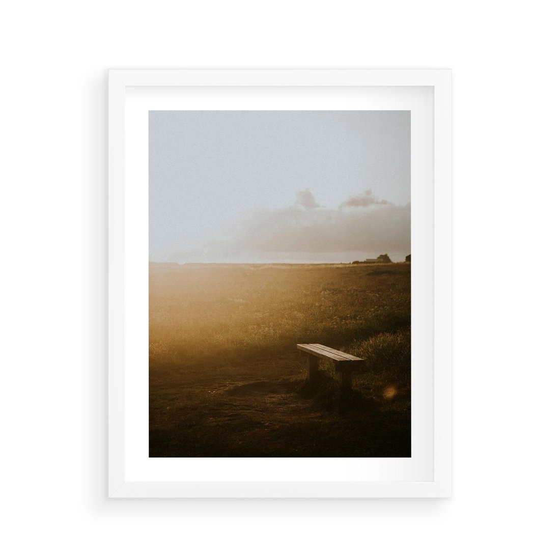 - Plakat w ramie 40x50 - Mglisty zachód słońca na ławeczce