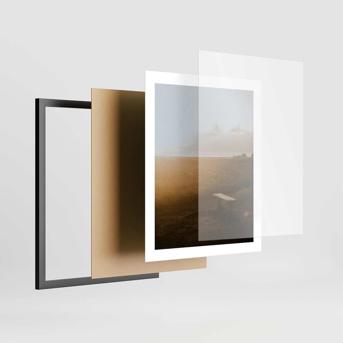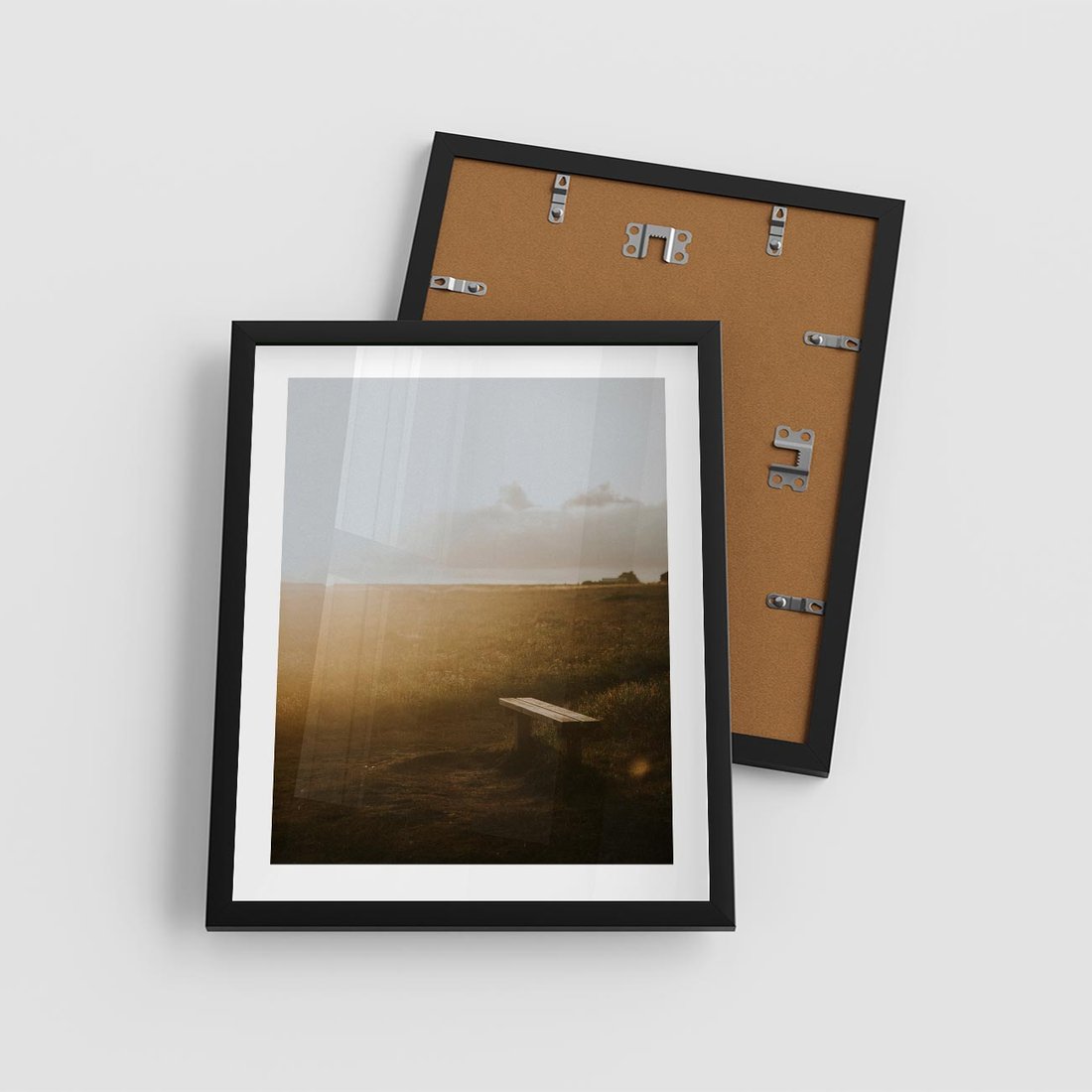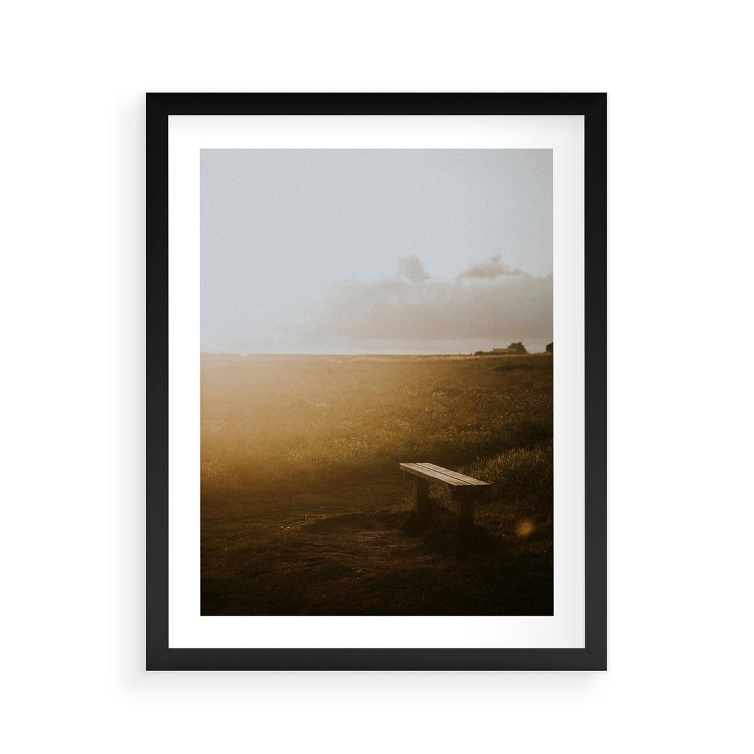 - Plakat w ramie 40x50 - Mglisty zachód słońca na ławeczce