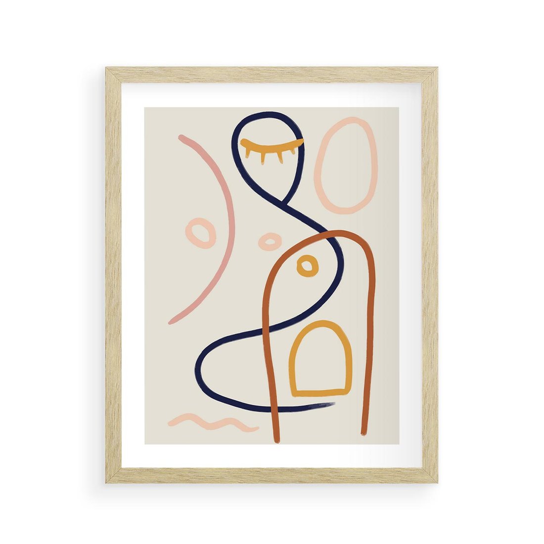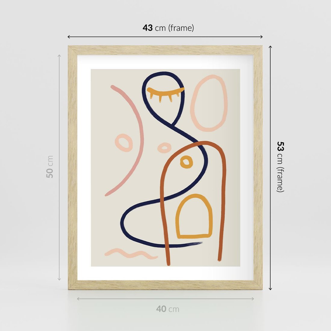 Plakat w ramie 40x50 - Mgnienie Oka - abstrakcja w stylu picasso, beżowe tło - rama drewno