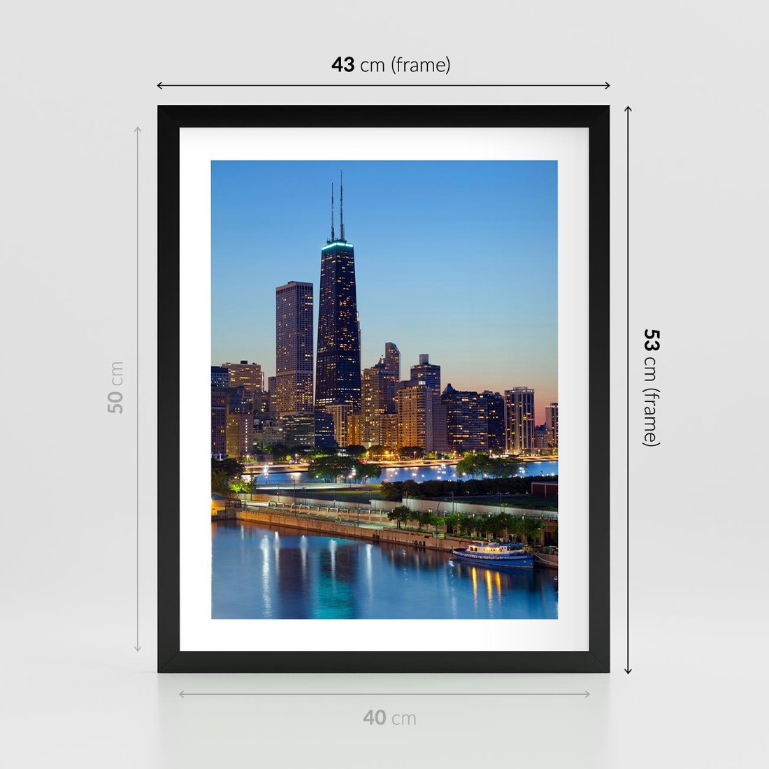 Plakat w ramie 40x50 - Miasto nad Rzeką - miasto, rzeka - rama czarna