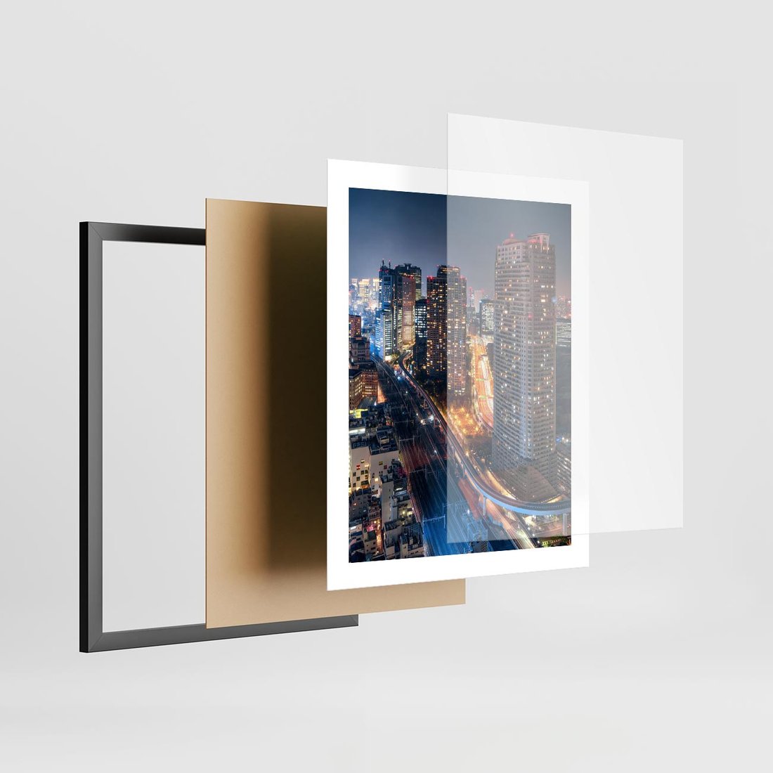 - Plakat w ramie 40x50 - Miasto nocą z wieżowcami w tle