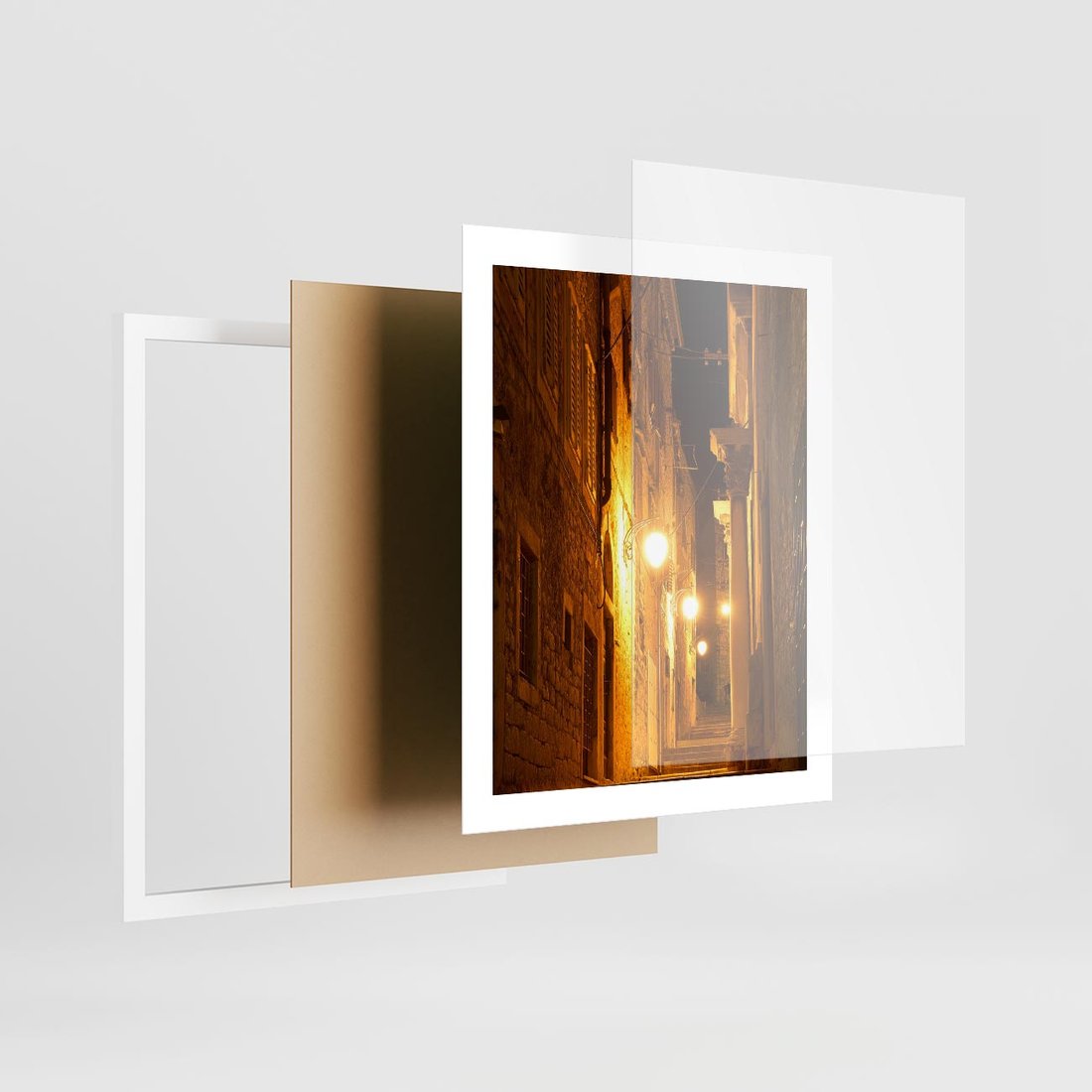 Ten fascynujący obraz uliczki w perspektywie nocą przeniesie Cię w świat tajemniczego miasta oświetlonego przez gwiazdy. Poczuj atmosferę nocnej przygody, obserwując perspektywiczne linie i rozgwieżdżone niebo. Dodaj magii i wyrazistości do swojego wnętrza.