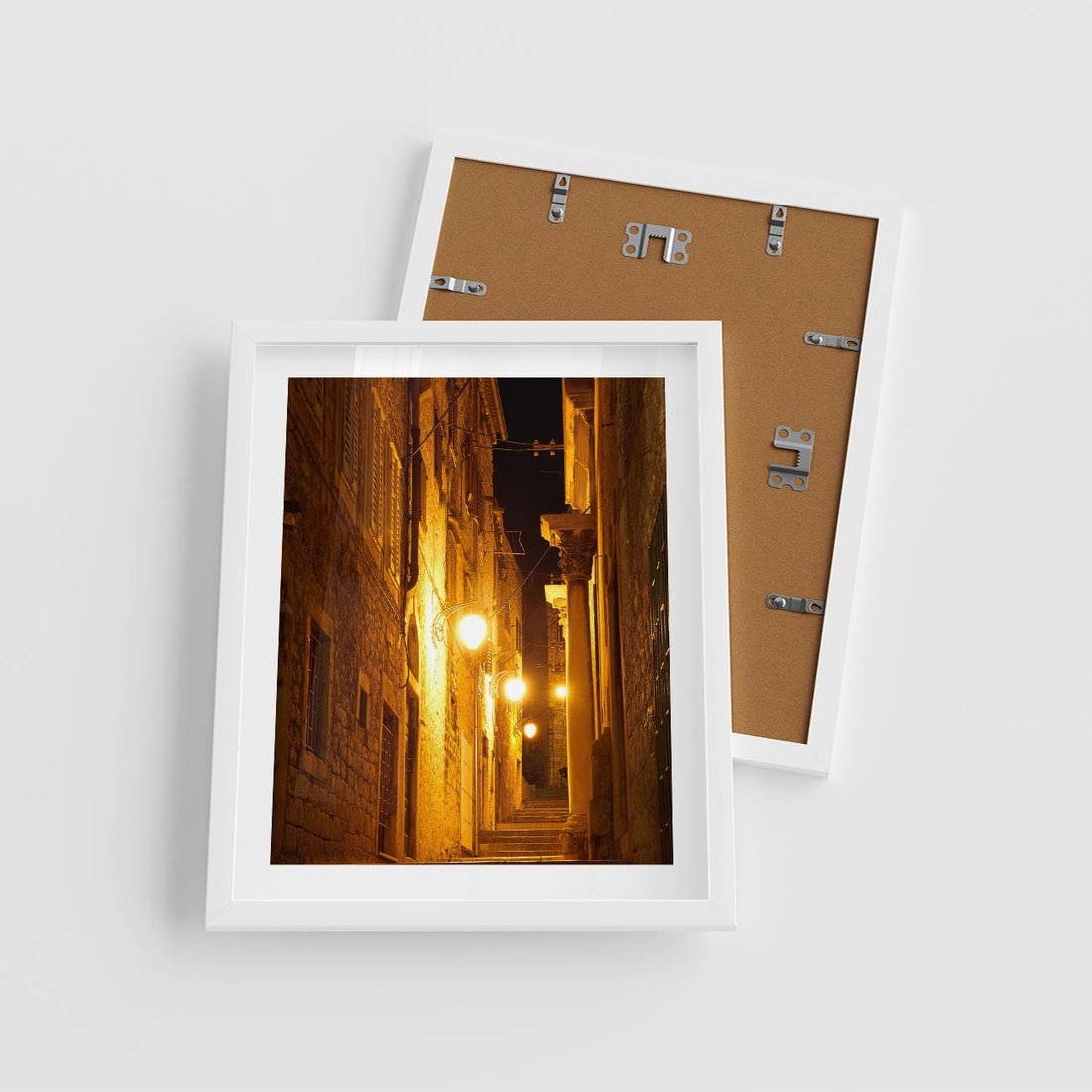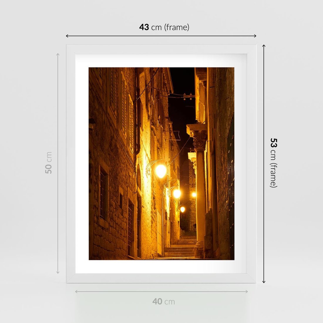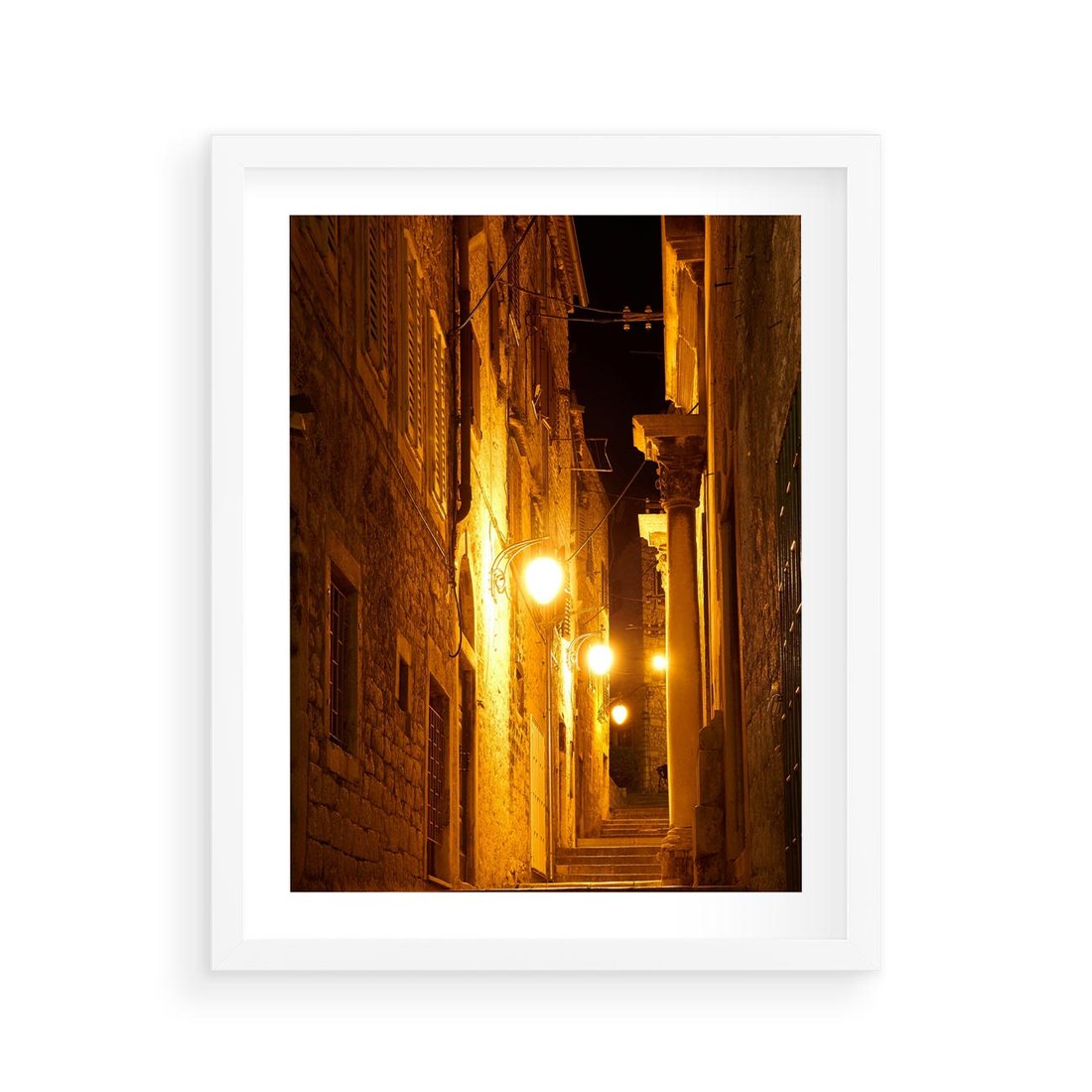 Plakat w ramie 40x50 - Miasto Pod Gwieździstym Niebem - uliczka, perspektywa - rama biała