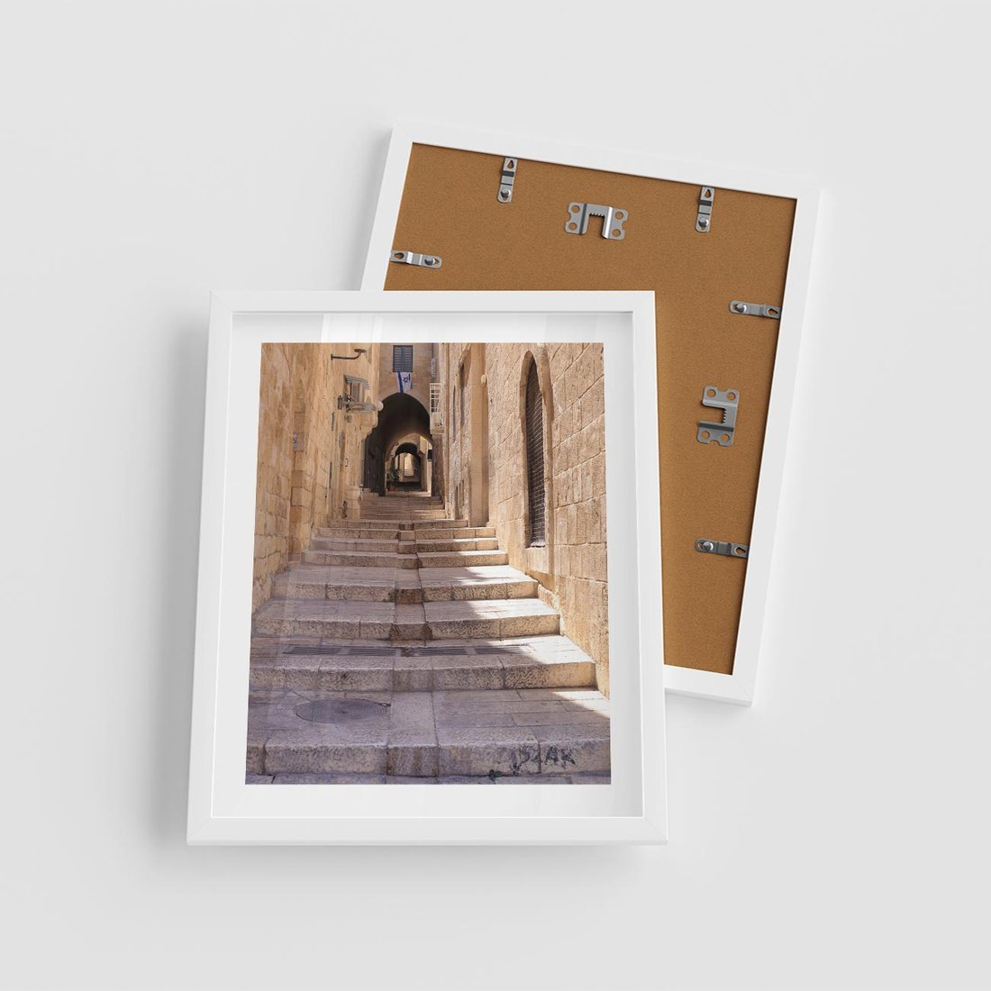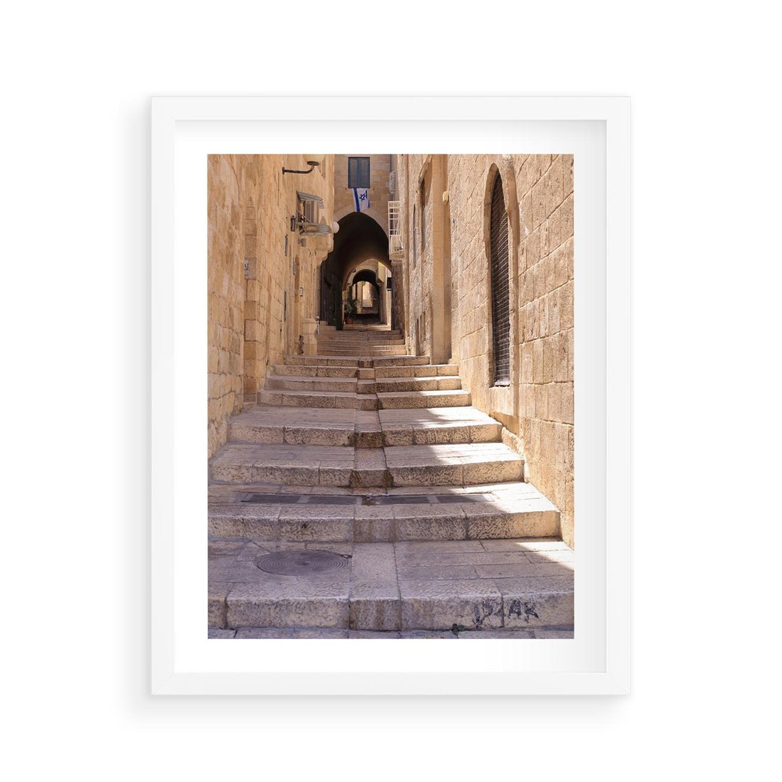 Plakat w ramie 40x50 - miasto w innej odsłonie - uliczka, perspektywa - rama biała