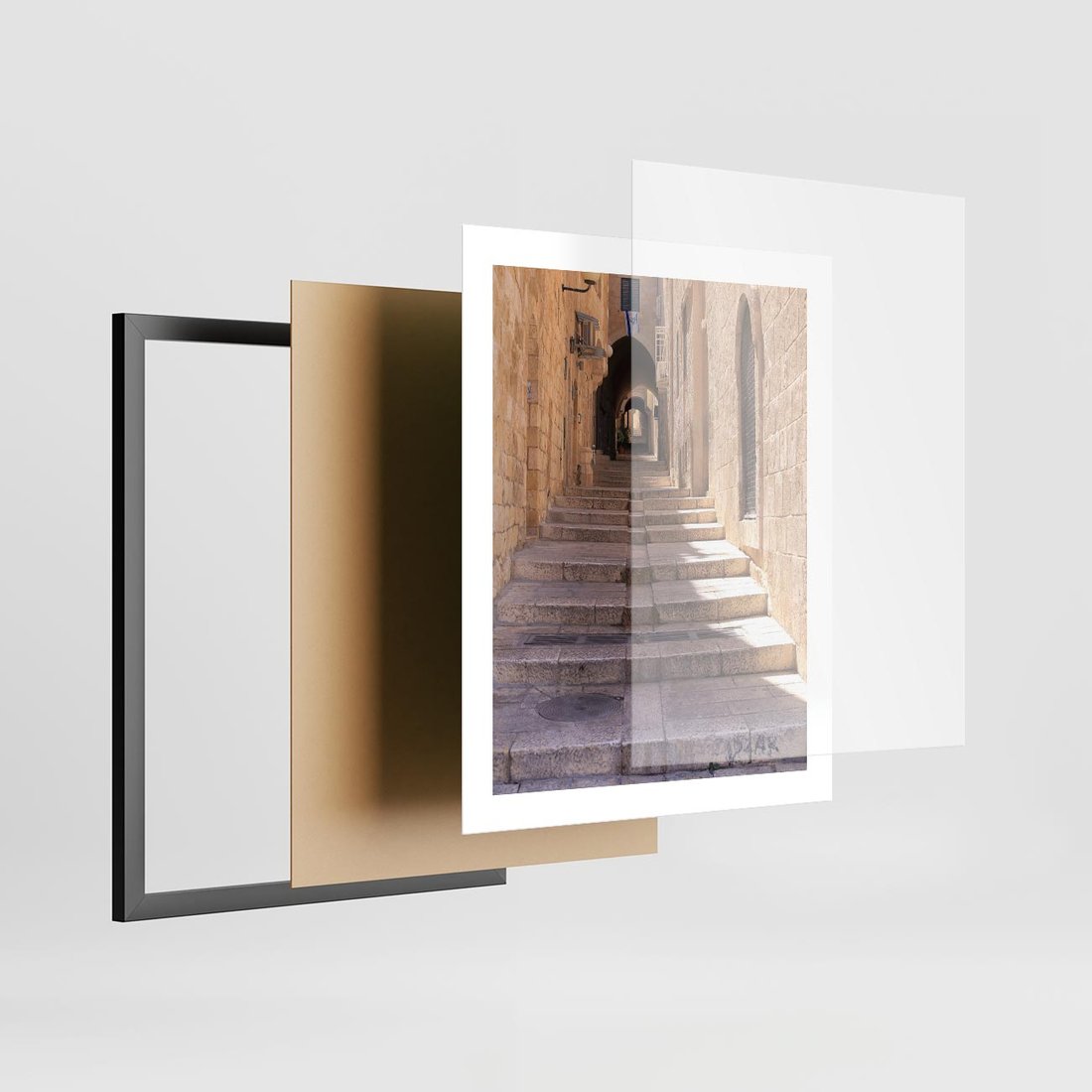 Plakat w ramie 40x50 - miasto w innej odsłonie - uliczka, perspektywa - rama czarna