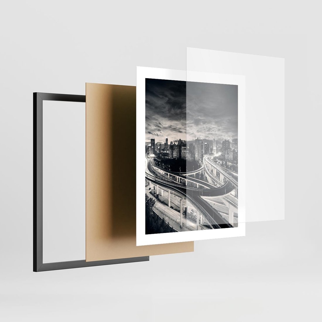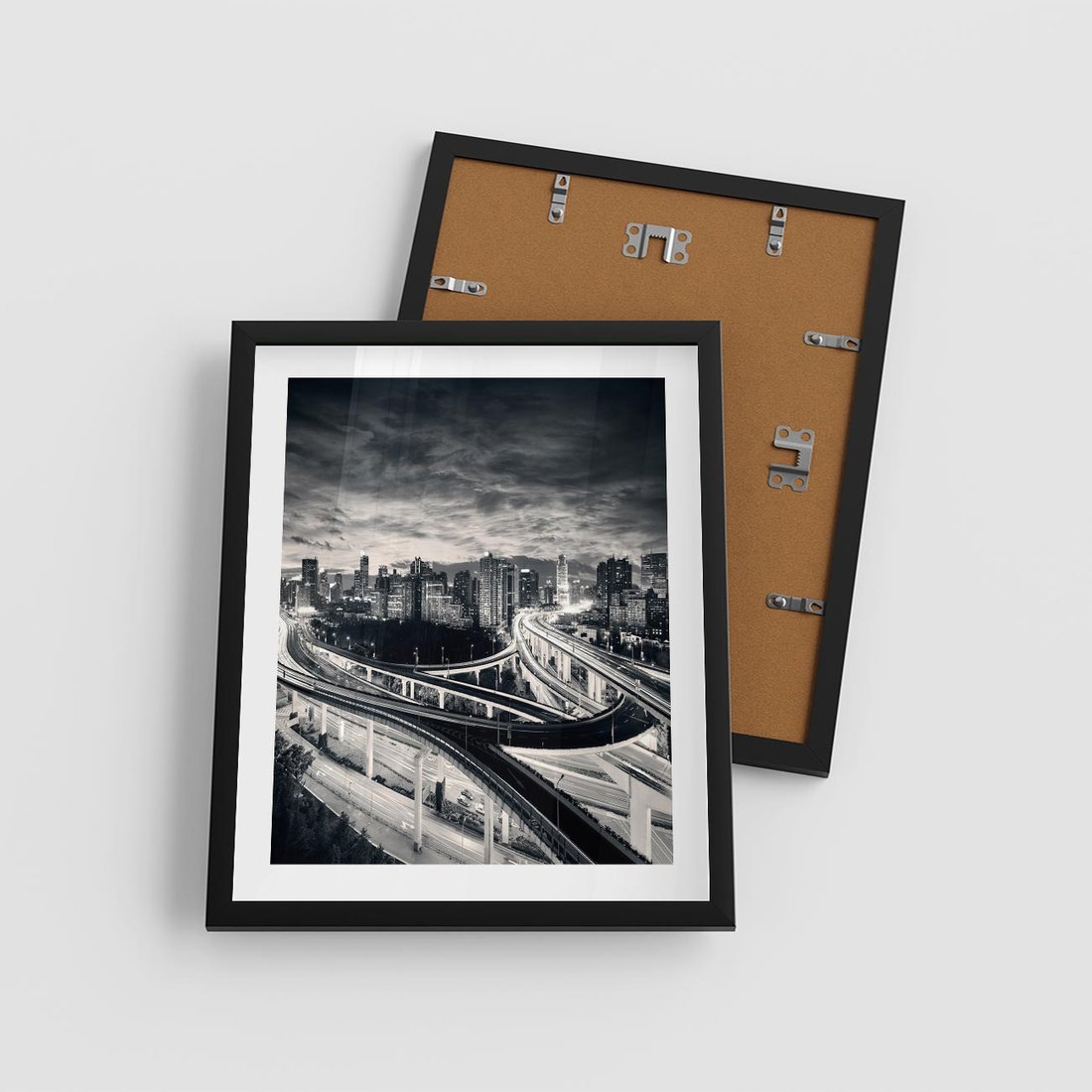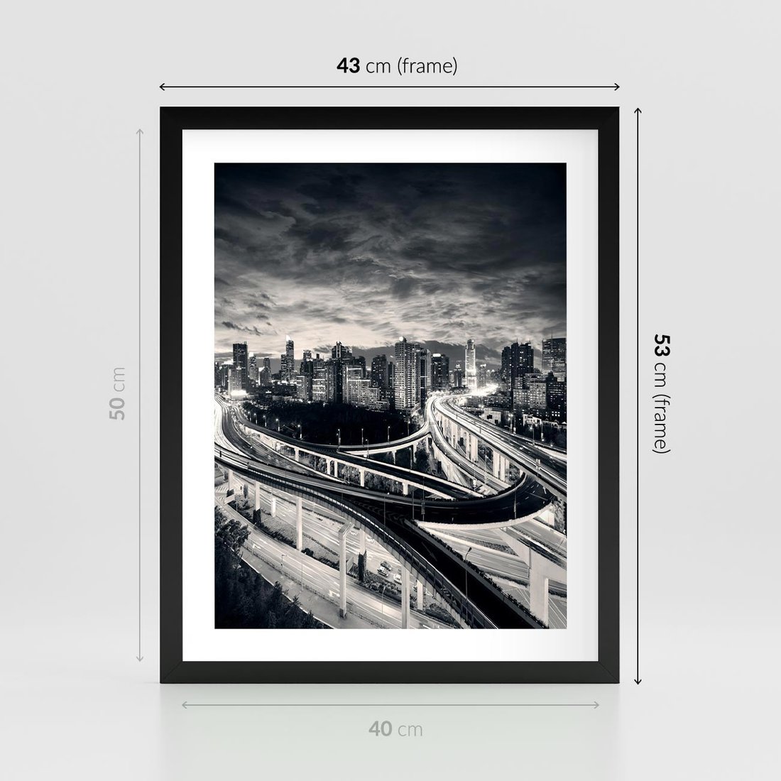 Plakat w ramie 40x50 - Miejska Symfonia - miasto, nocą - rama czarna