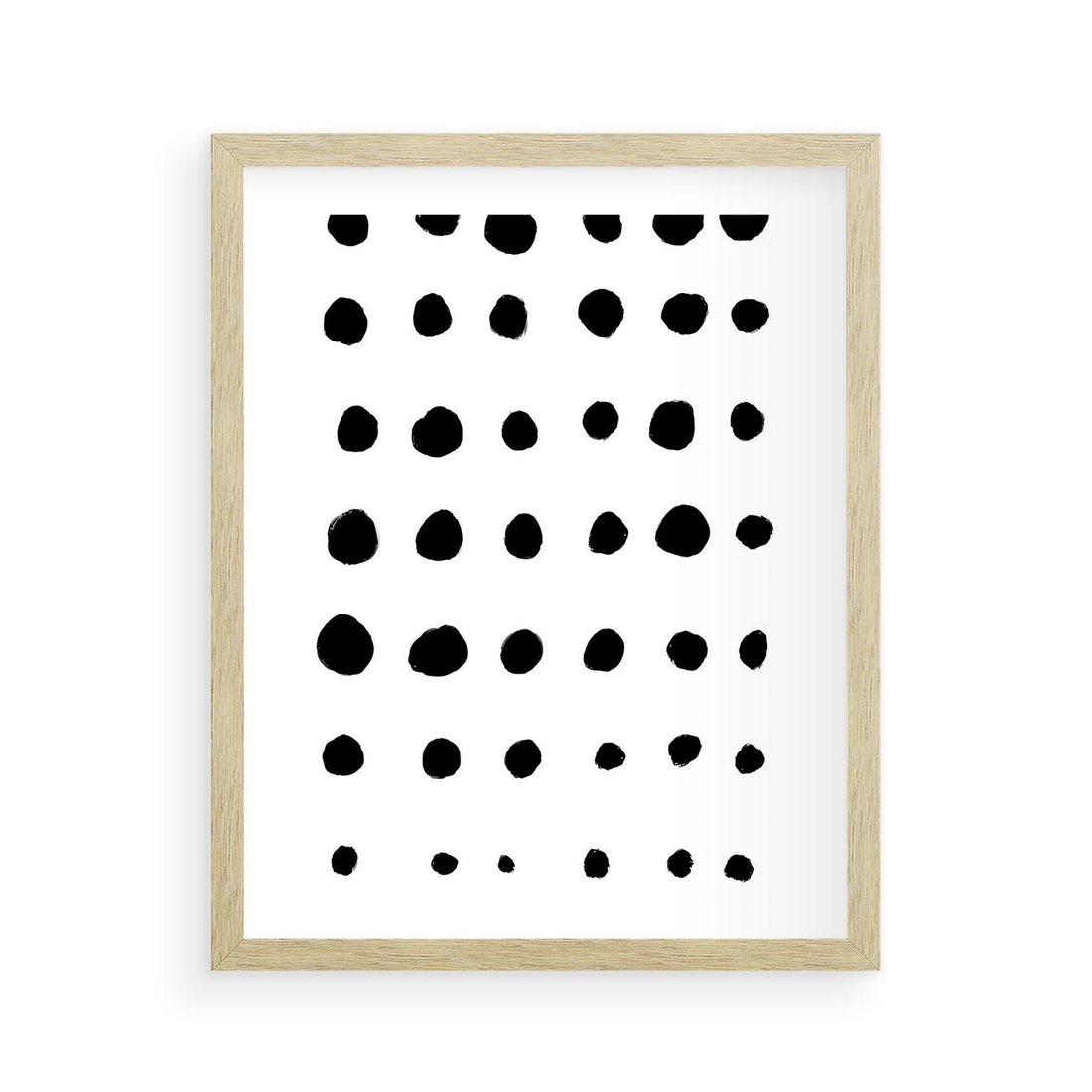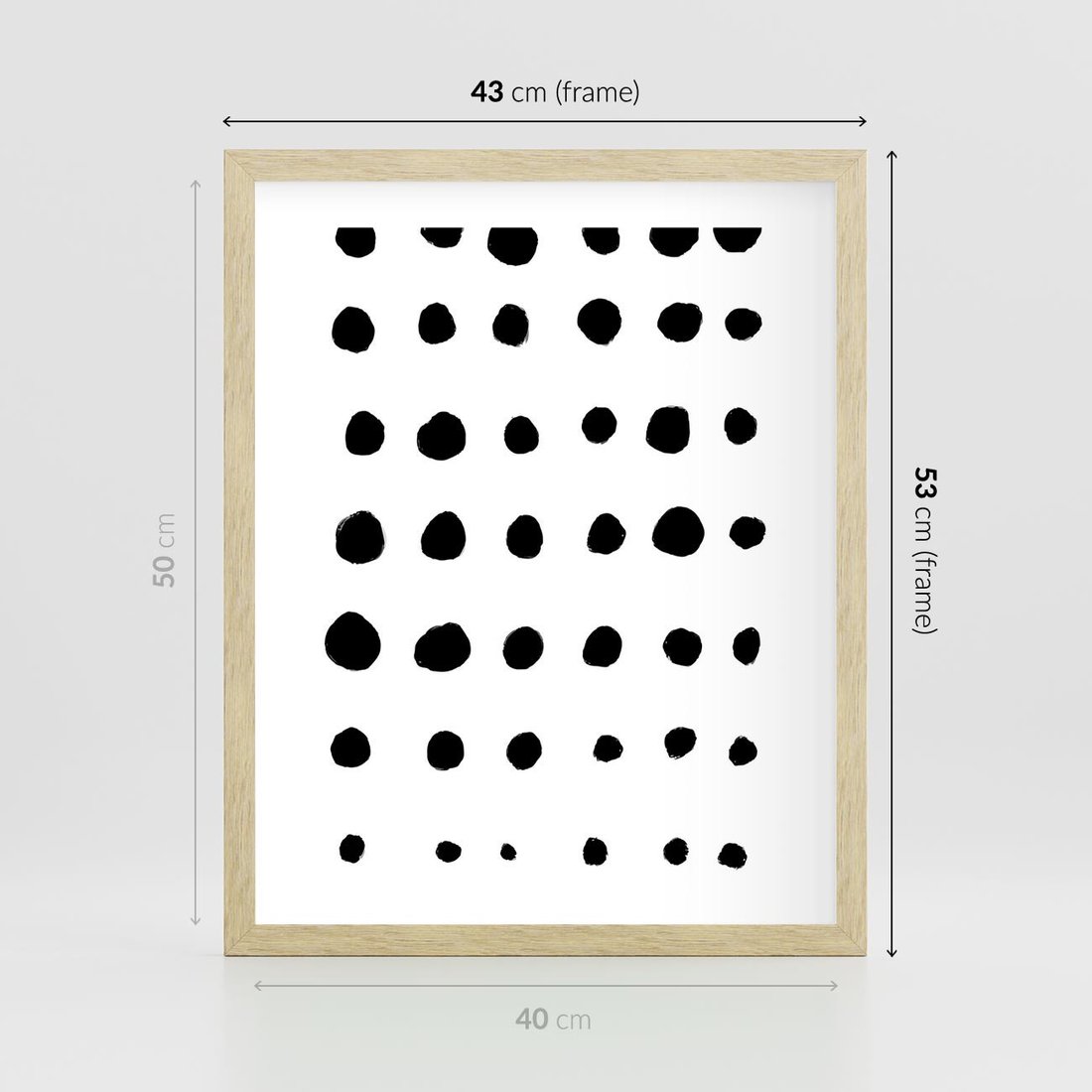 Plakat w ramie 40x50 - Migocące Anomalie - abstrakcyjna kompozycja z czarnych kropek, minimalistyczny czarno bialy plakat - rama drewno