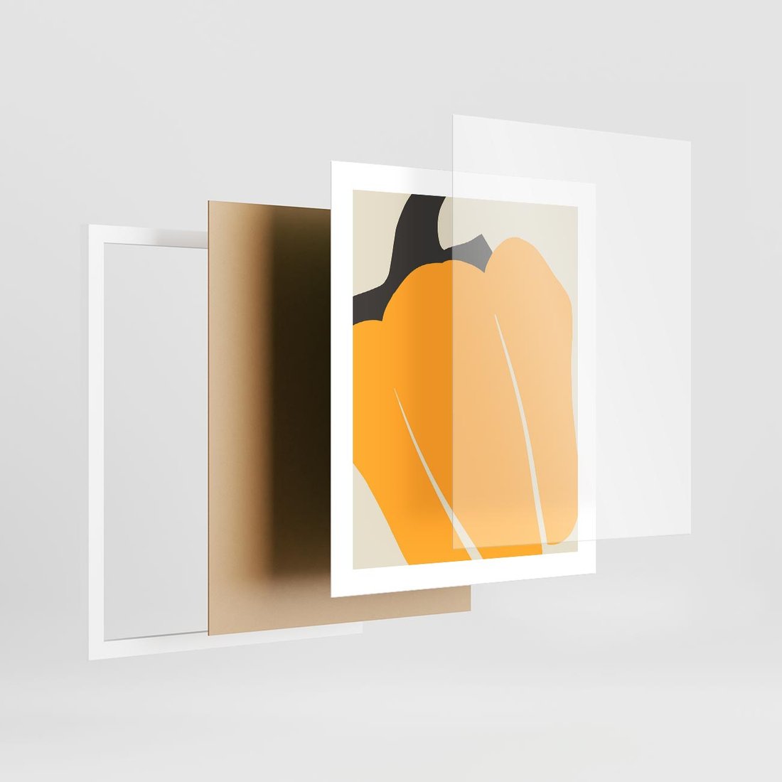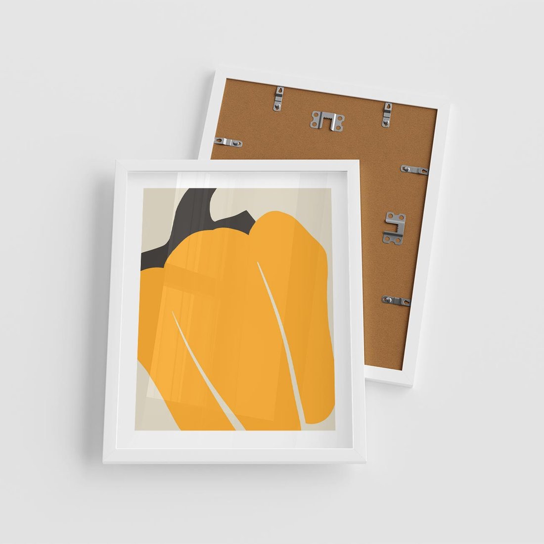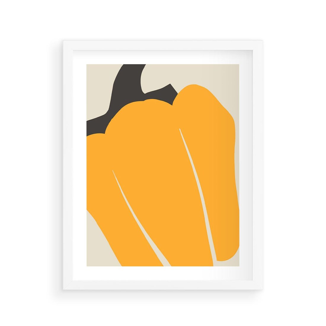 Plakat w ramie 40x50 - Migocące Formy - abstrakcyjny minimalistyczny obraz, żółta papryczka - rama biała