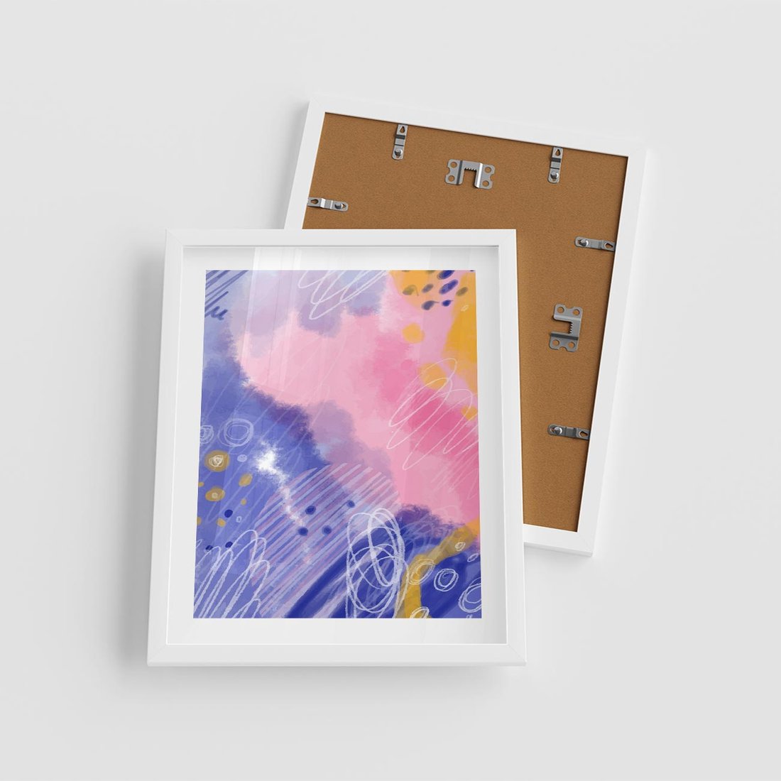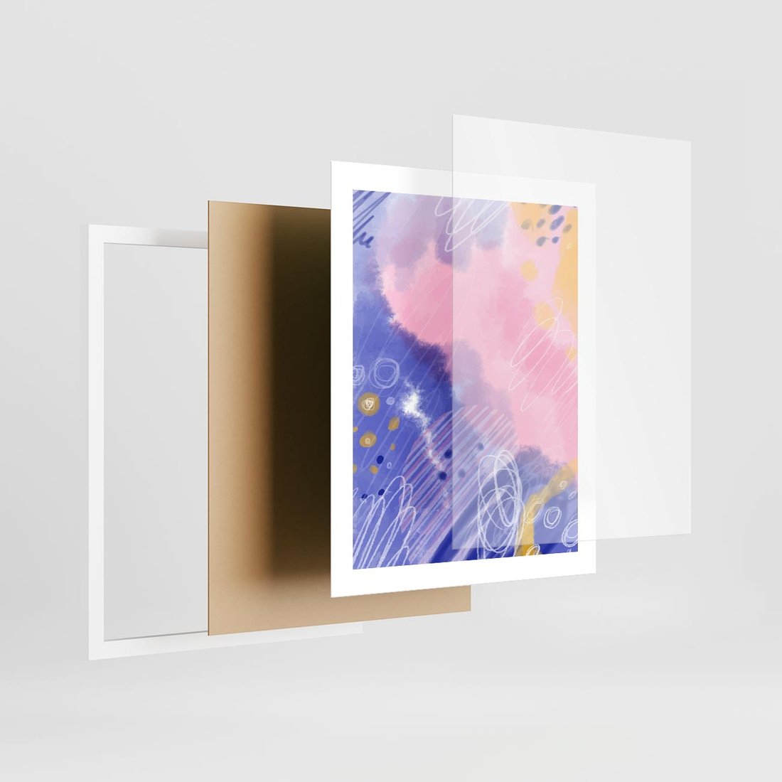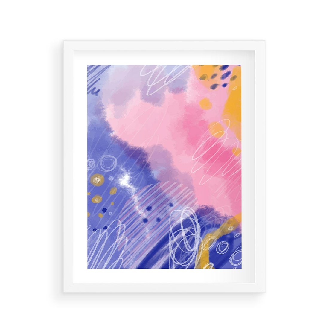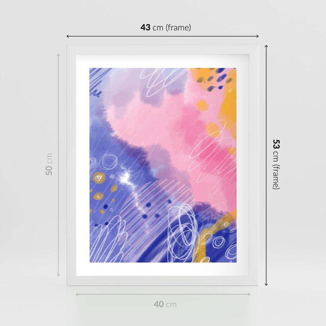Plakat w ramie 40x50 - Migocące Granice Kształtów - abstrakcyjny plakat, pastelowe kolory - rama biała