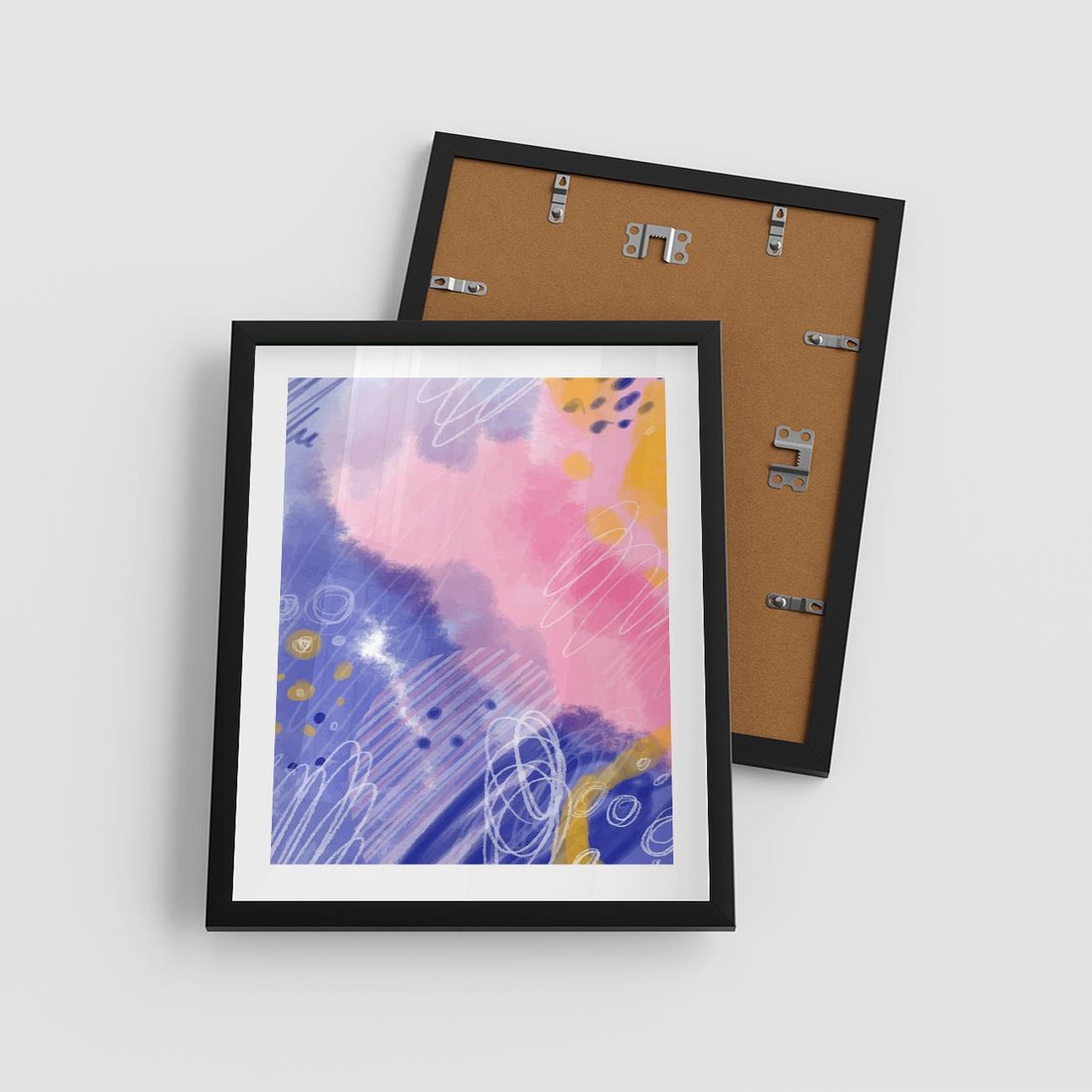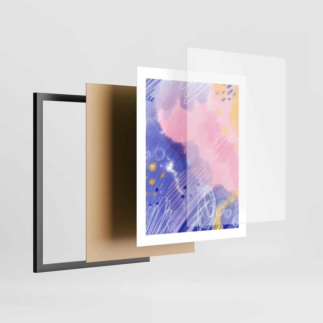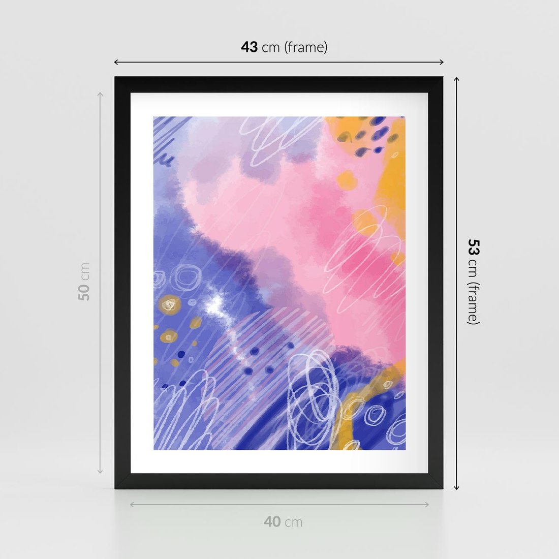 Plakat w ramie 40x50 - Migocące Granice Kształtów - abstrakcyjny plakat, pastelowe kolory - rama czarna