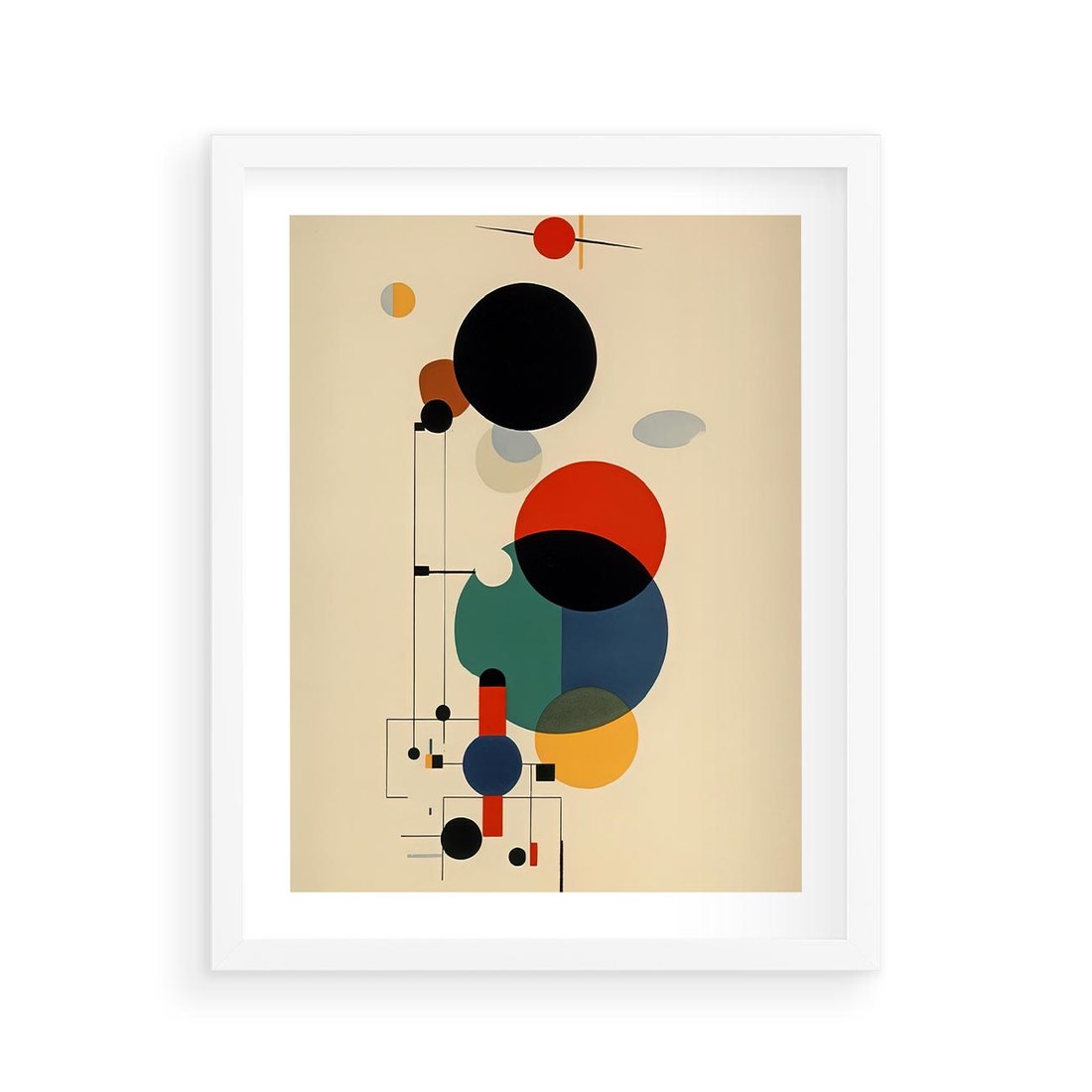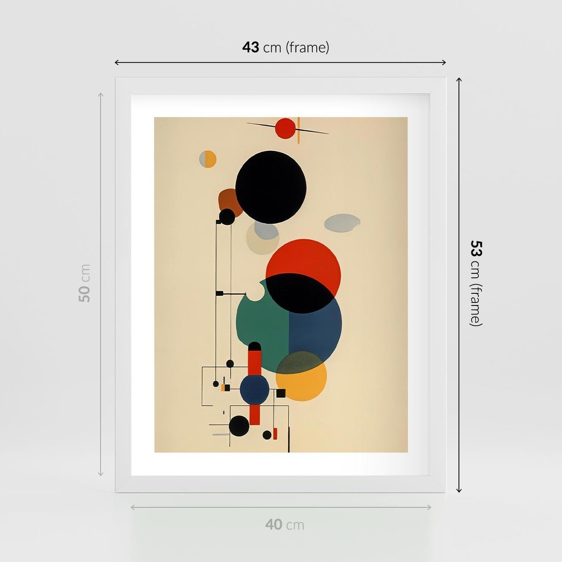 Plakat w ramie 40x50 - Migocące Impresje Odniesień - abstrakcyjna geometryczna kompozycja, koła linie - rama biała