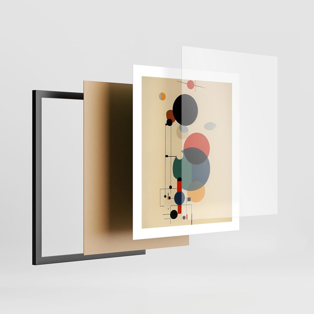 Plakat w ramie 40x50 - Migocące Impresje Odniesień - abstrakcyjna geometryczna kompozycja, koła linie - rama czarna