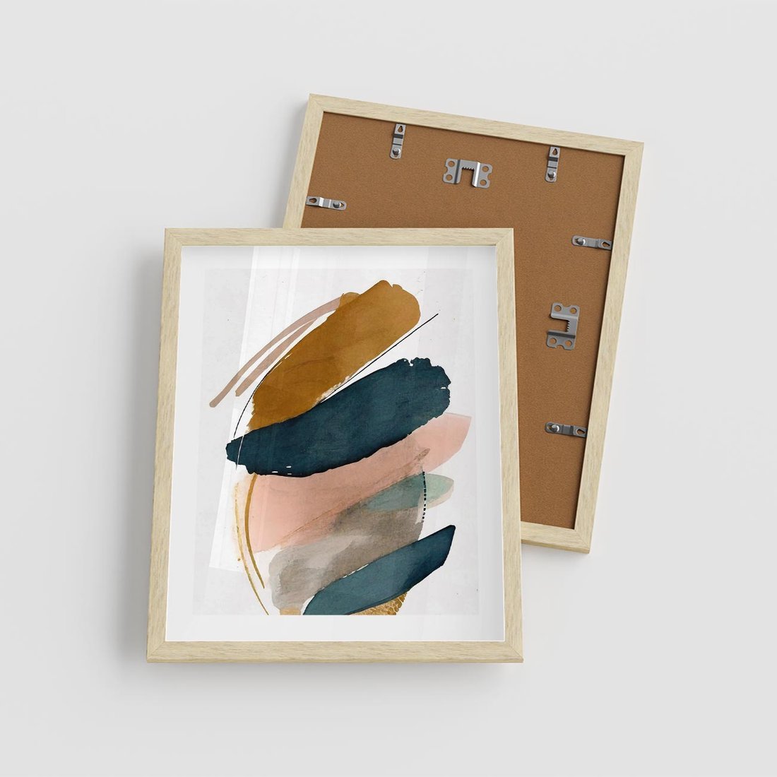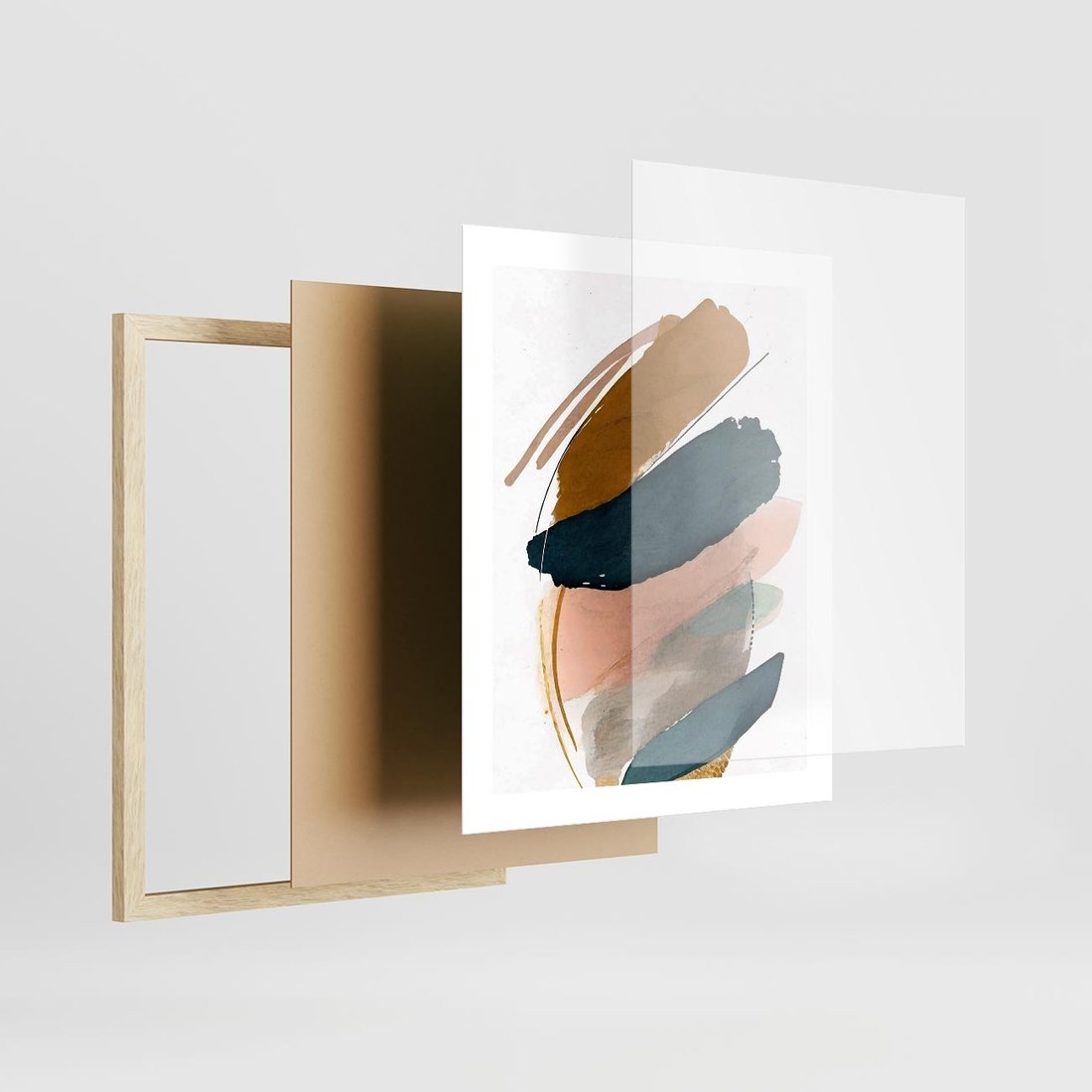 Plakat w ramie 40x50 - Migocące Impresje Przestrzeni - abstrakcyjny obraz, kolory ciepłe - rama drewno