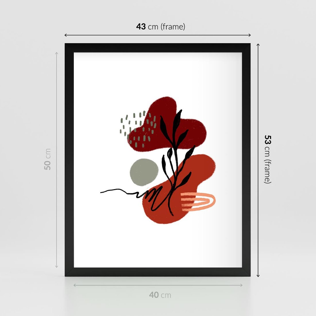 Plakat w ramie 40x50 - Migocące Kształty Liści - bstrakcyjna sztuka, boho kształty - rama czarna