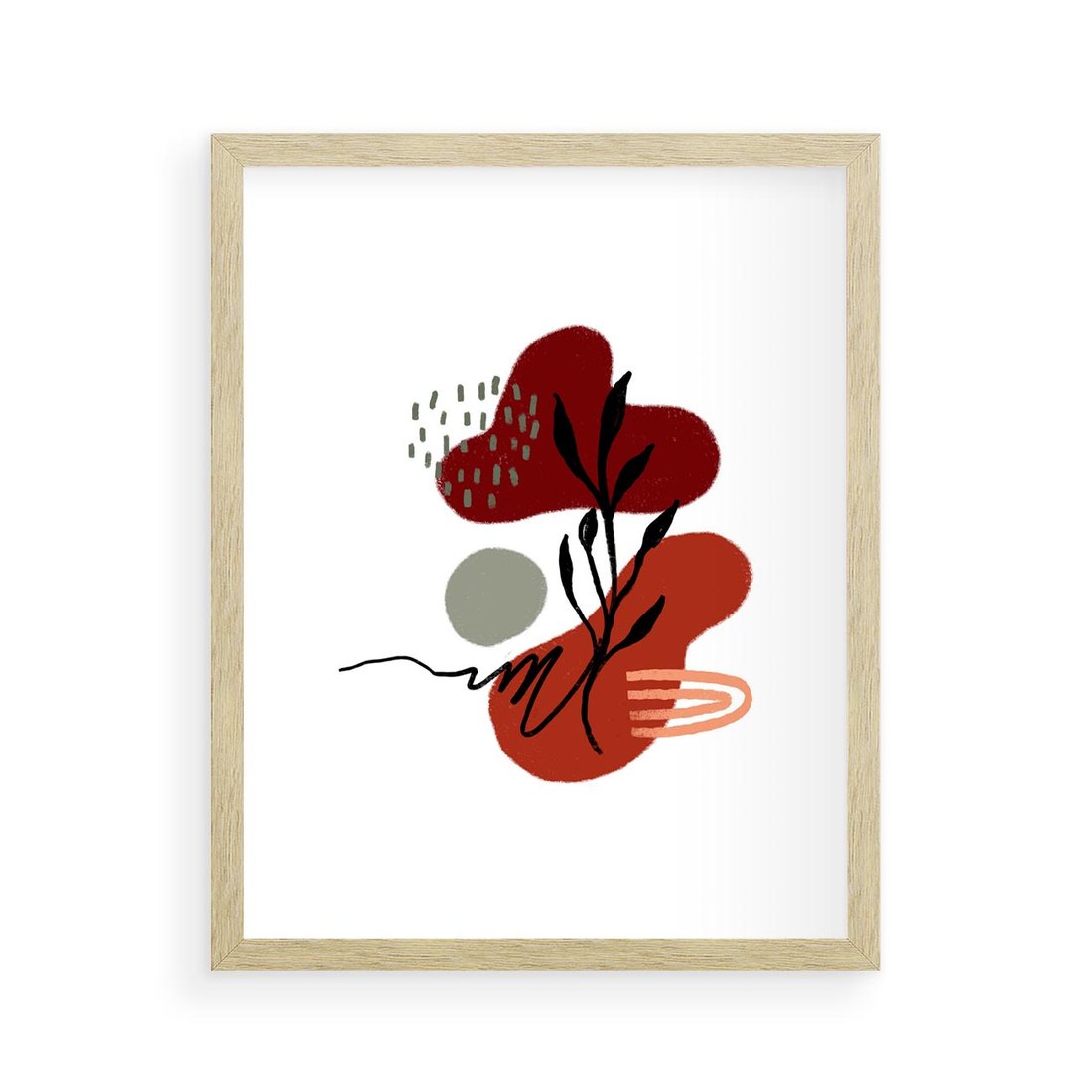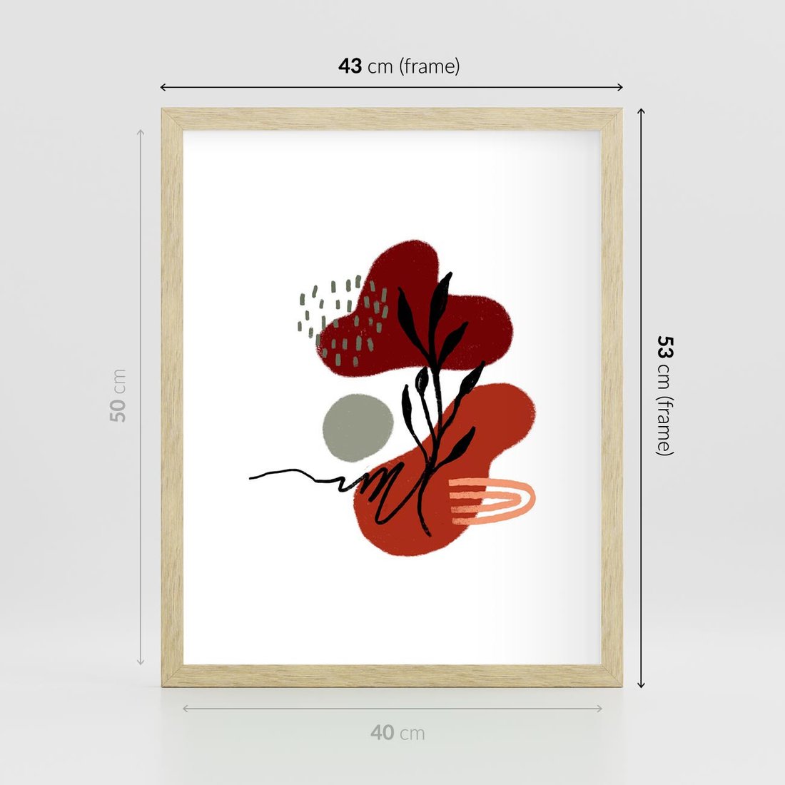 Plakat w ramie 40x50 - Migocące Kształty Liści - bstrakcyjna sztuka, boho kształty - rama drewno