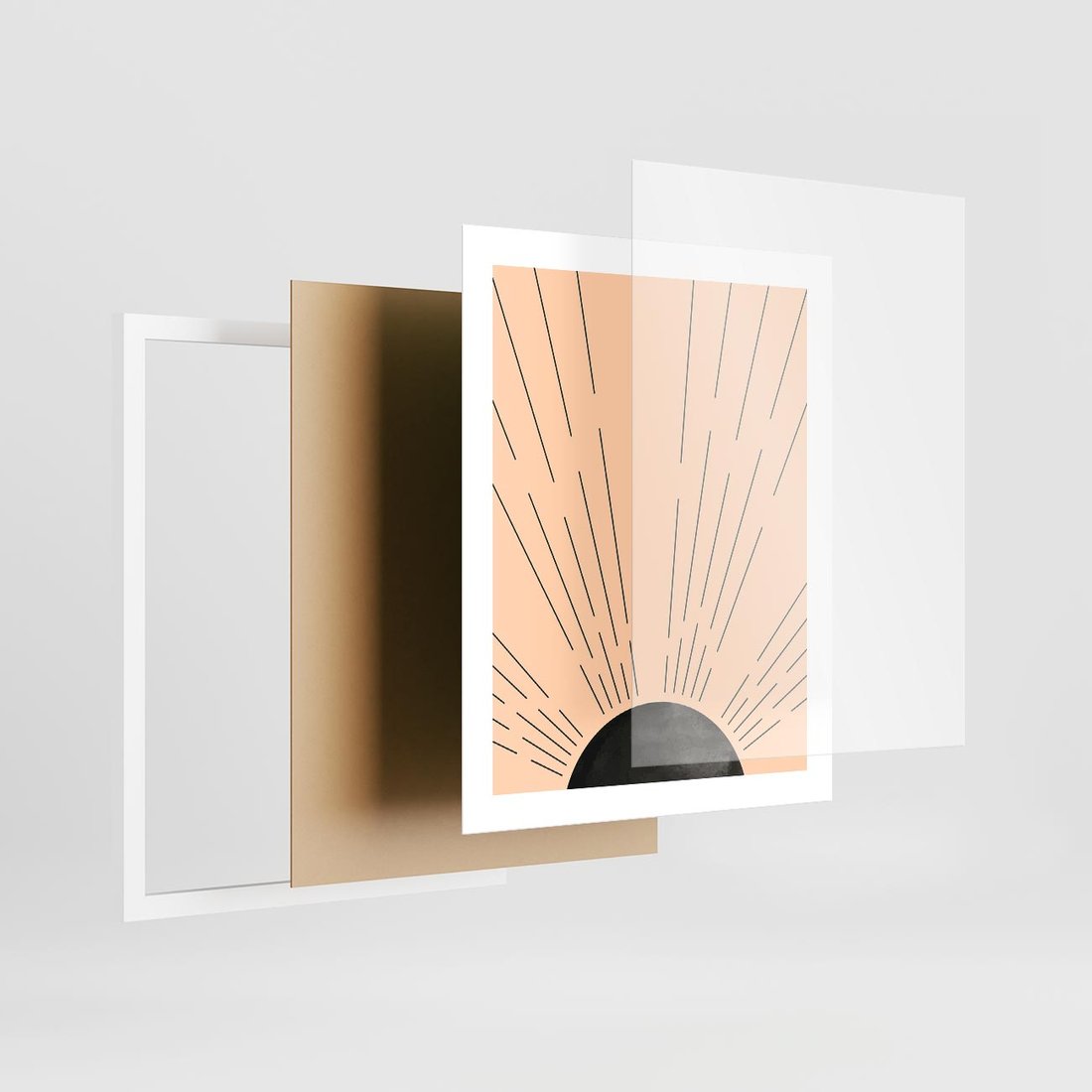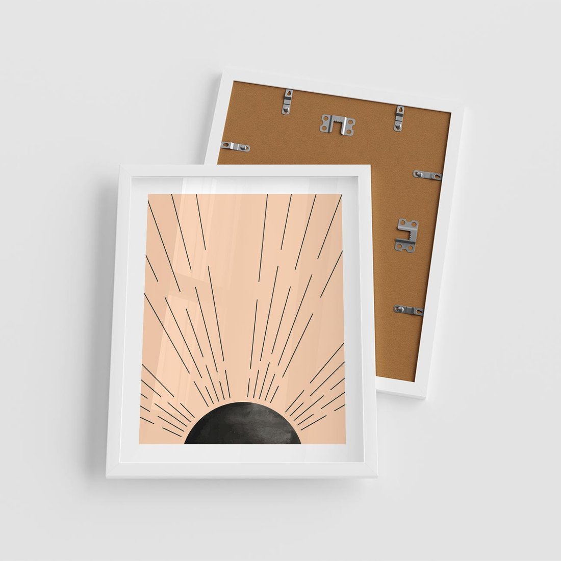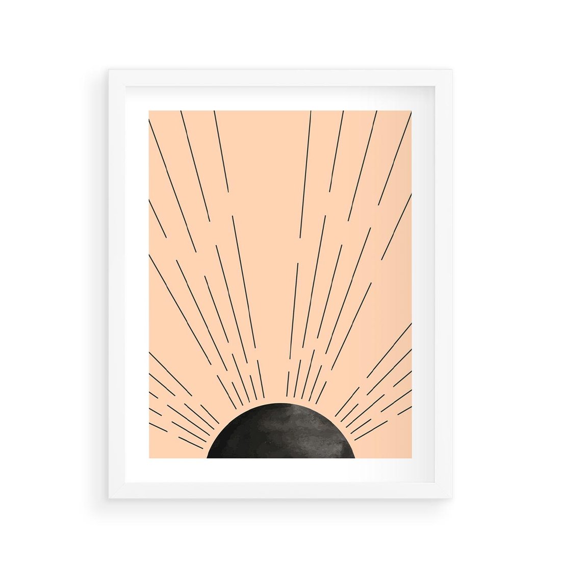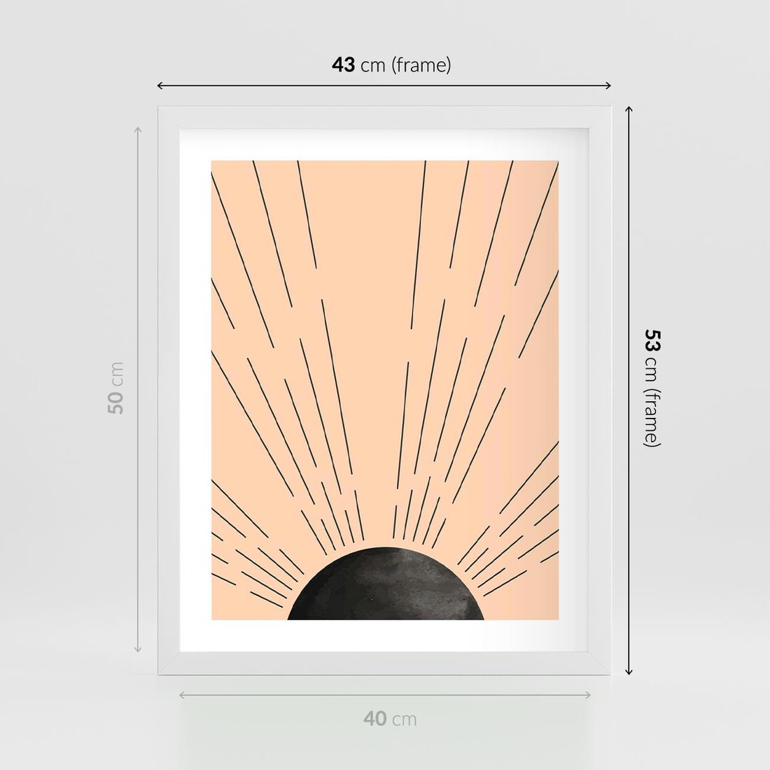 Plakat w ramie 40x50 - Migocące Kształty Promieni - boho czarne słońce, nowoczesna grafika - rama biała